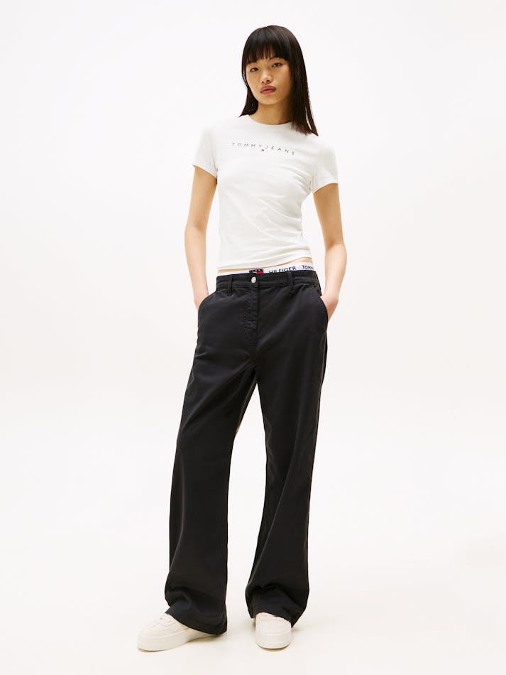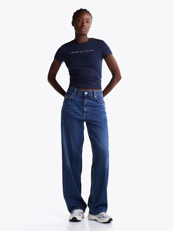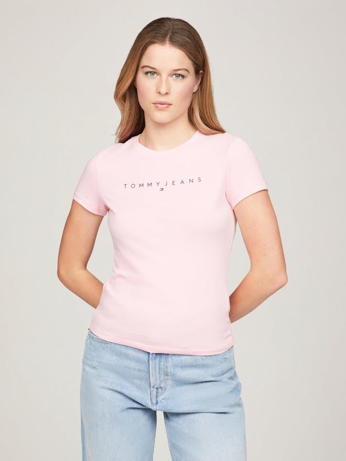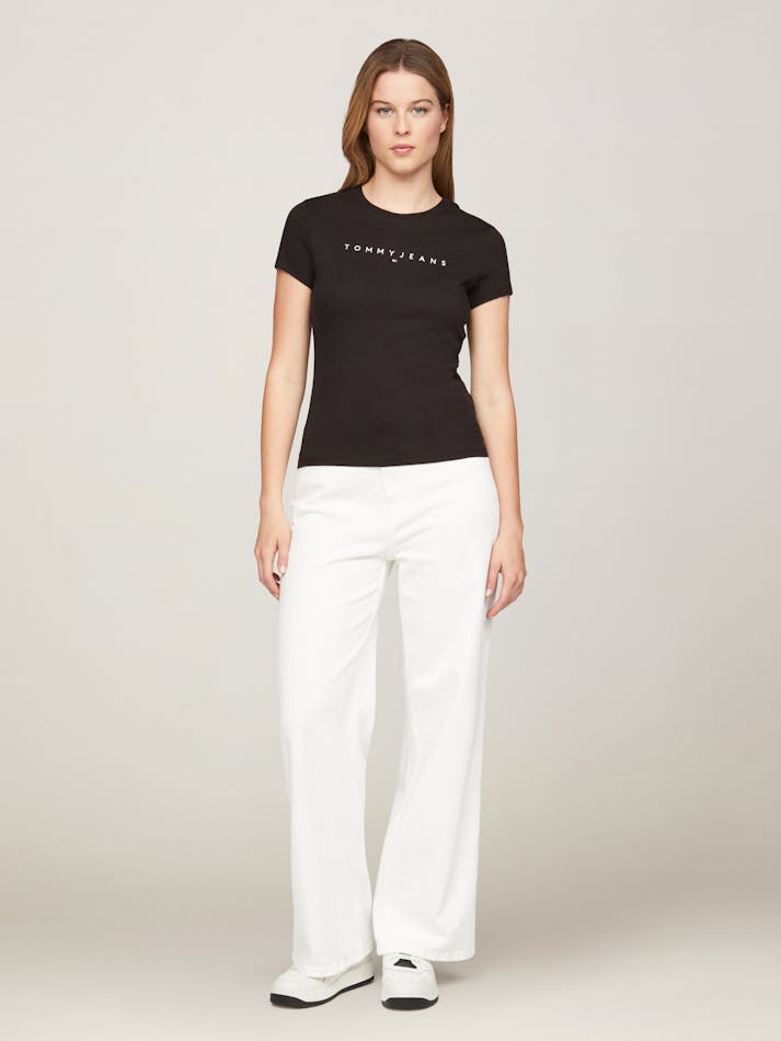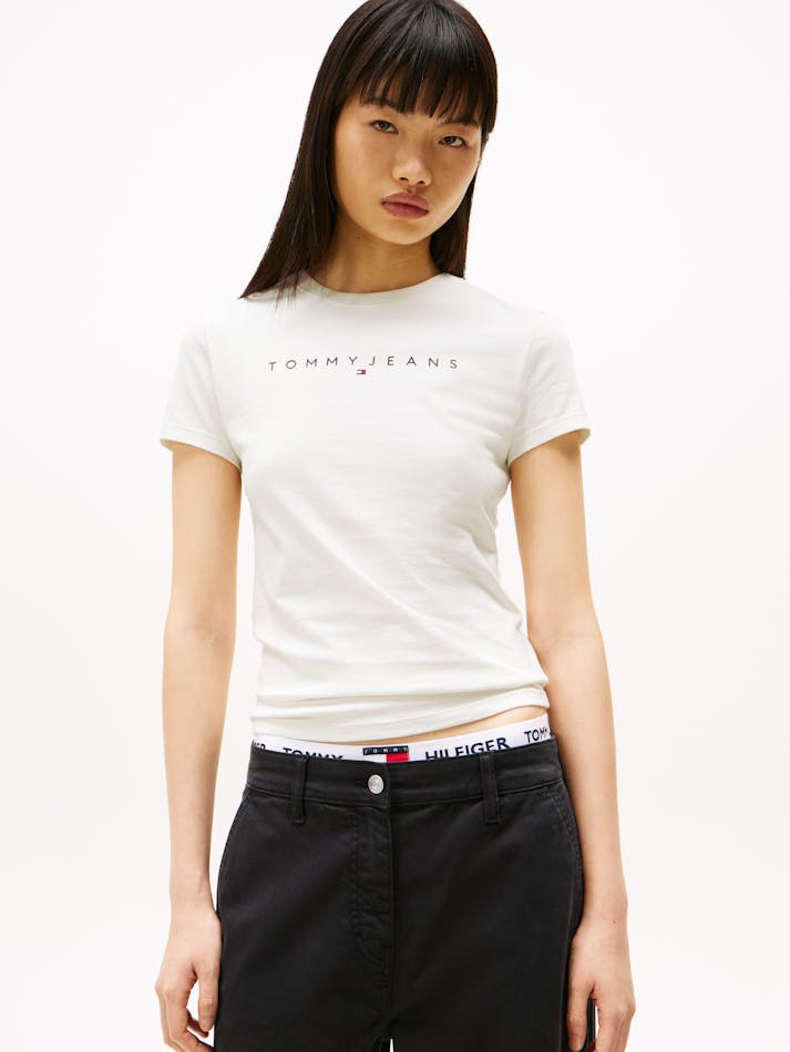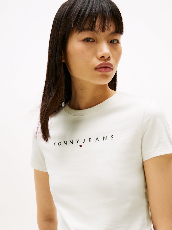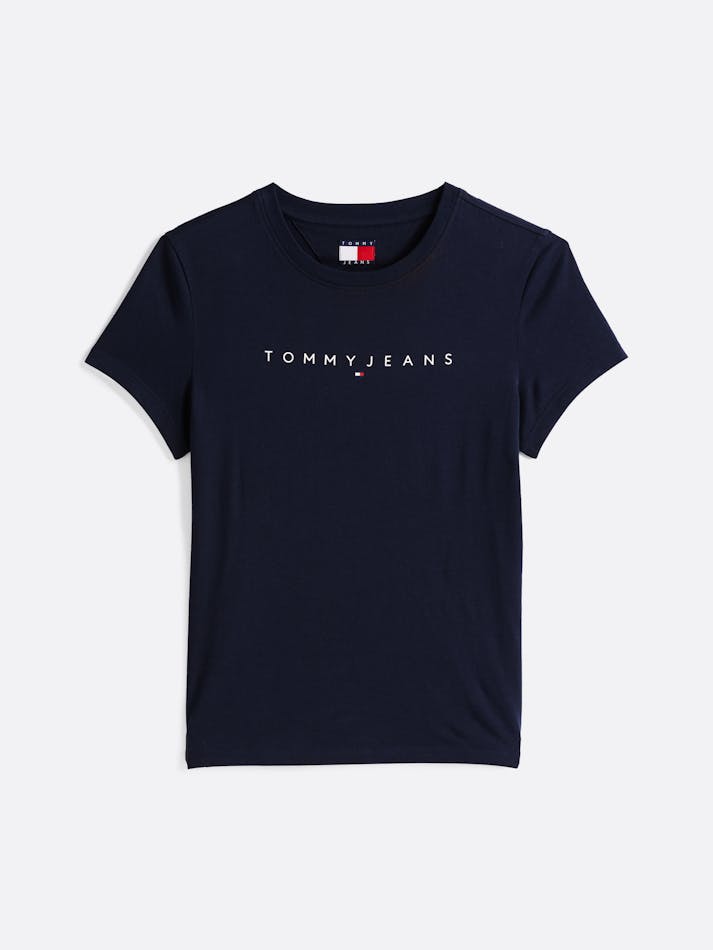 With a statement logo across the front, this crew-neck tee in a flattering slim fit channels signature style.