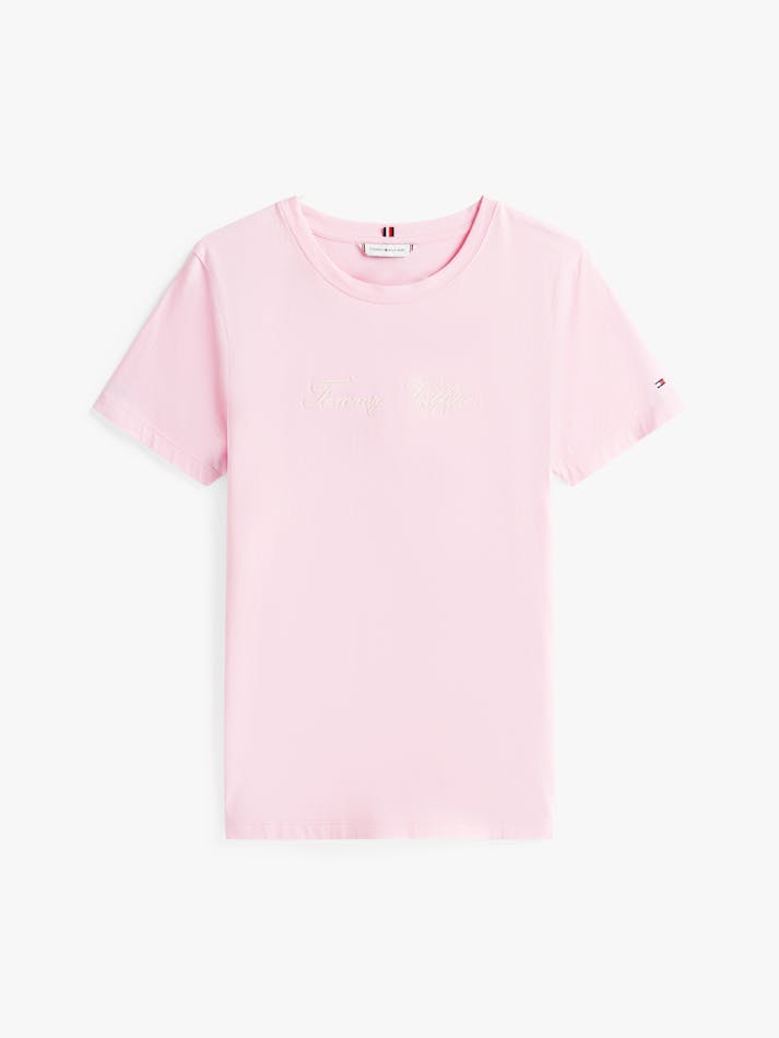 This crew-neck T-shirt adds signature style to an everyday staple with its bold script logo embroidery across the chest.