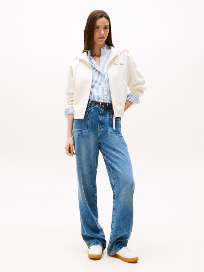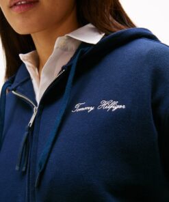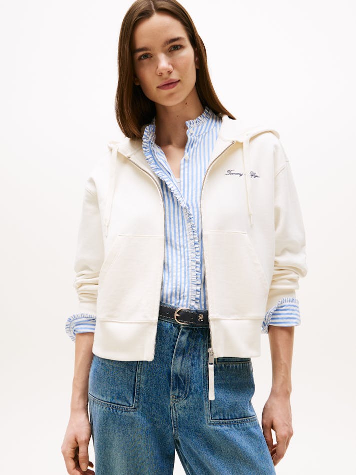 This zip-thru hoody features a contrasting script logo on the chest, maintaining your signature style in every layer.