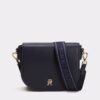 This crossbody saddle bag is an effortless choice for weekends, featuring a repeat logo webbing strap and a glistening TH monogram plaque.