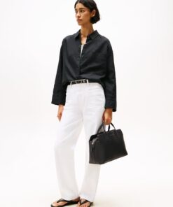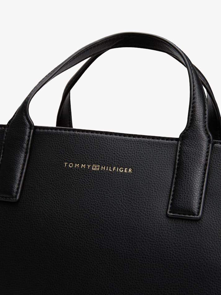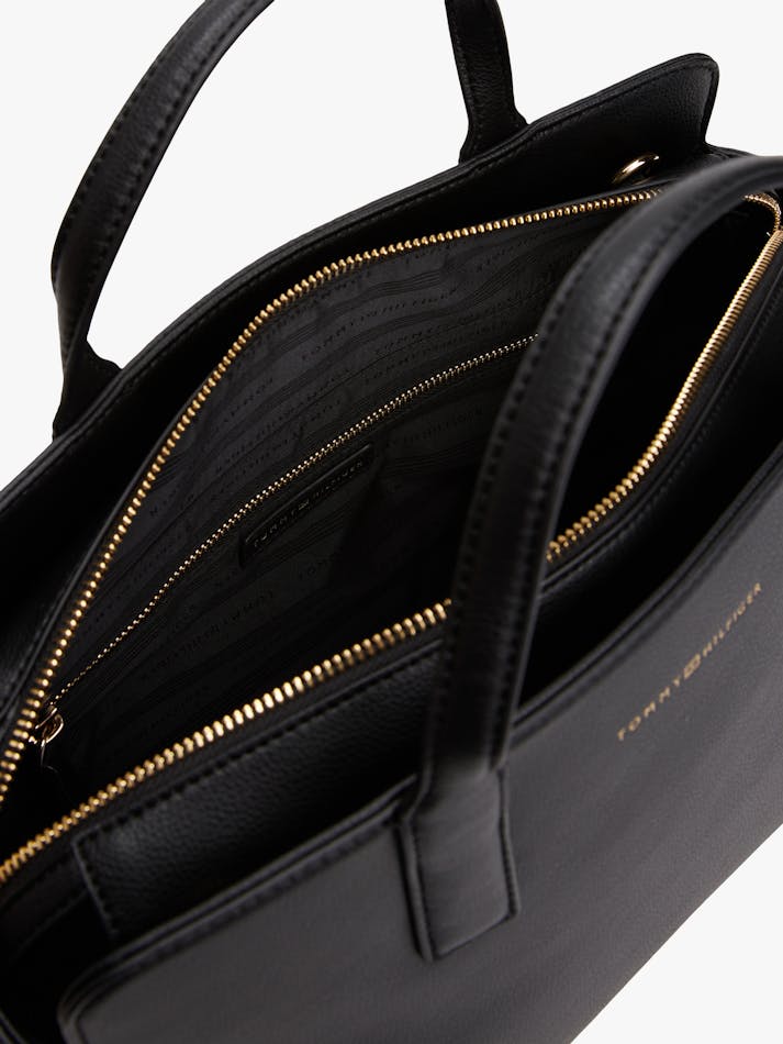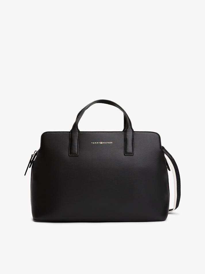 For effortless style, this satchel offers two top handles, a branded adjustable shoulder strap and an embossed Tommy Hilfiger logo for sleek everyday style.