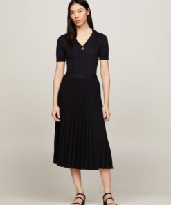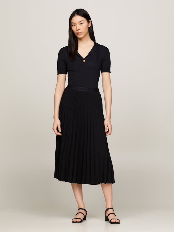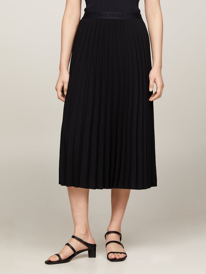 LOGO WAISTBAND PLEATED MIDI SKIRT