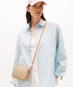 Add a luxe touch to your ensemble with this camera bag, featuring a branded logo on the webbing crossbody strap.