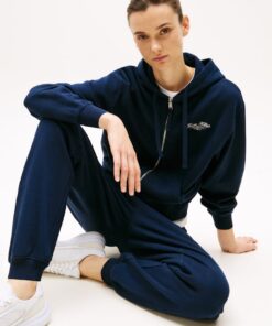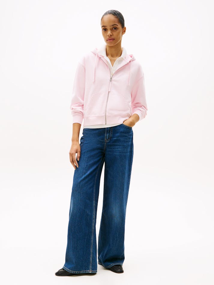 This pure cotton zip-thru hoody is a cosy yet stylish choice, with a classic script logo adding a signature touch.