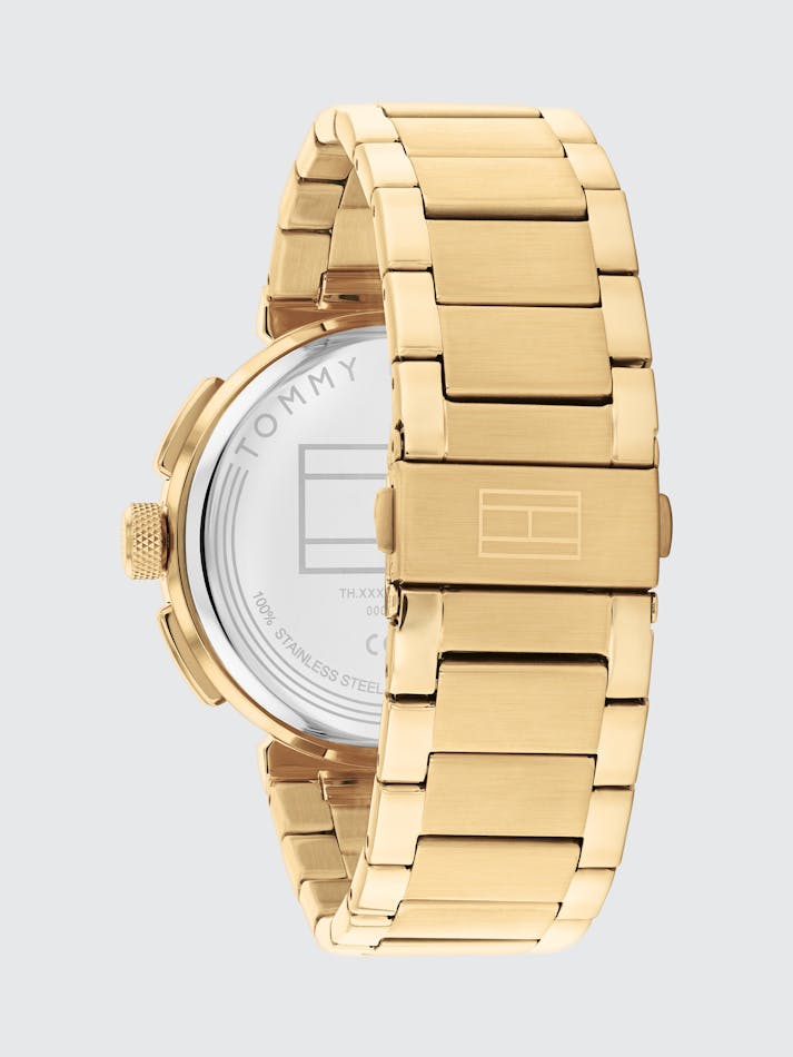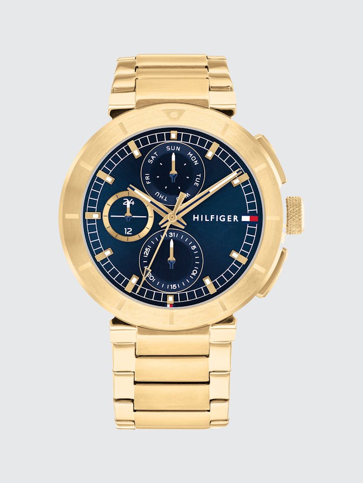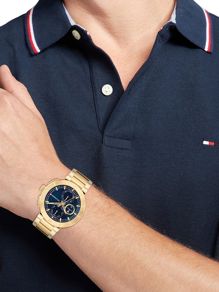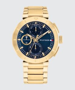 Add a touch of sophistication with this Tommy Hilfiger gold stainless steel watch featuring a blue dial. Perfect for any occasion, dressing up for a night out or elevating your every day style.