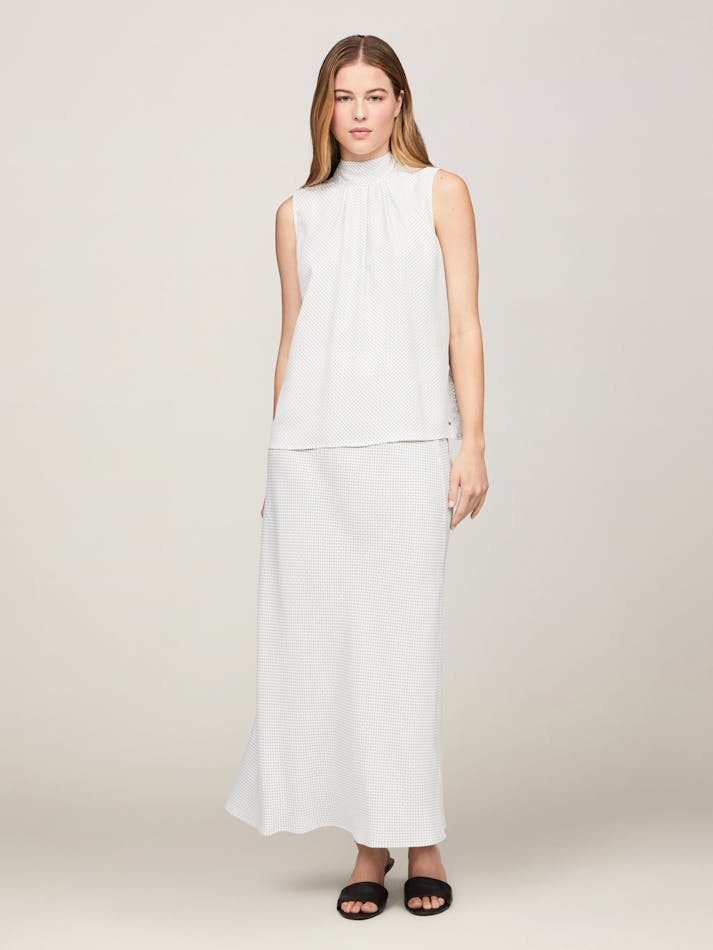 The playful bow at the neck makes this viscose top the ideal dress up or dress down option for any occasion, featuring a sleeveless design and finished with a mini dot print.