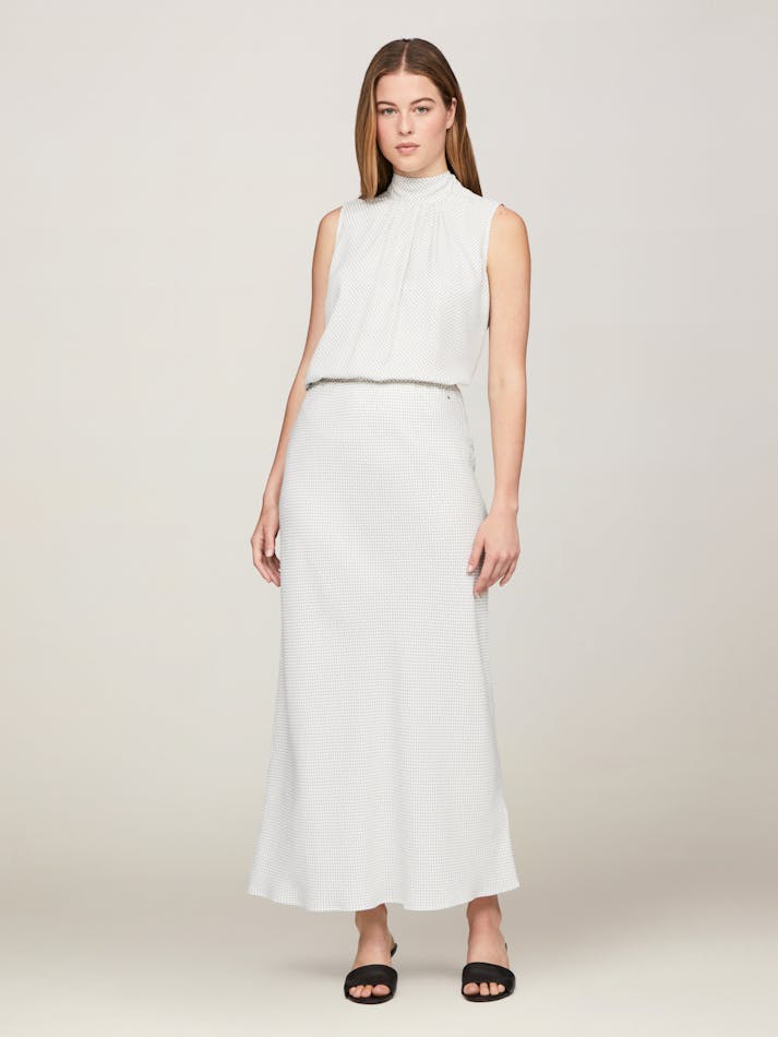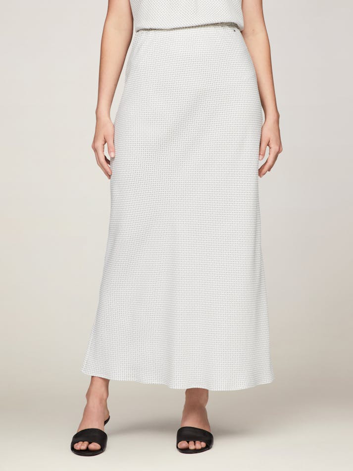 Simple yet stylish, this maxi skirt is made from viscose for beautiful drape and feel. With a discreet elastic waist and all-over print, this skirt is easily dressed up or down for any occasion.