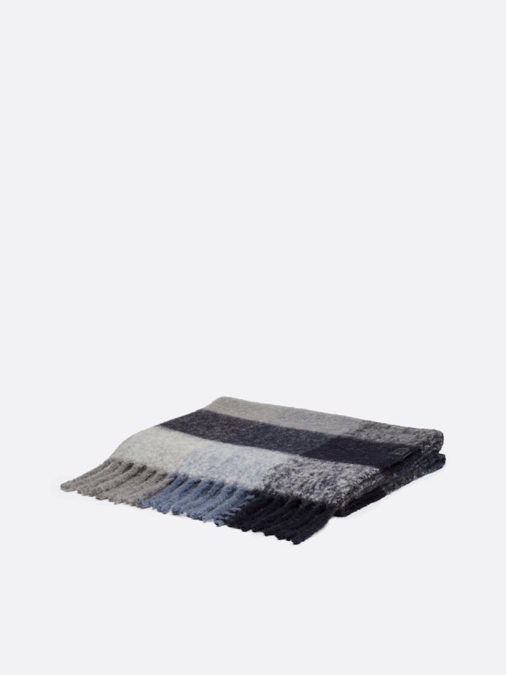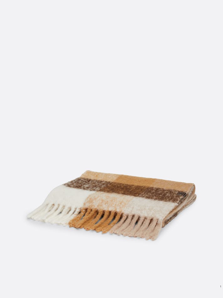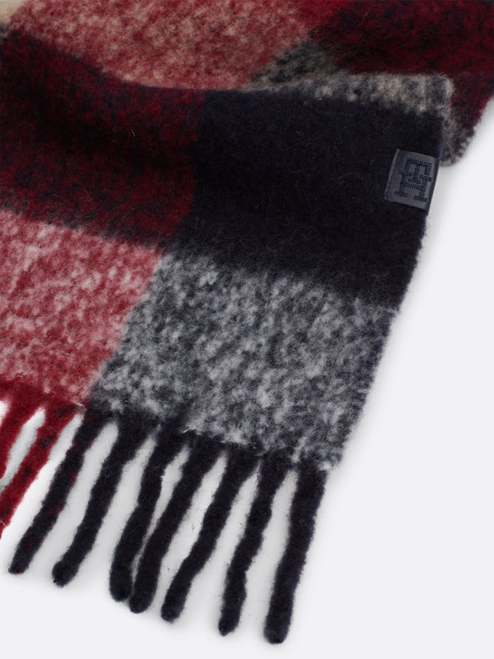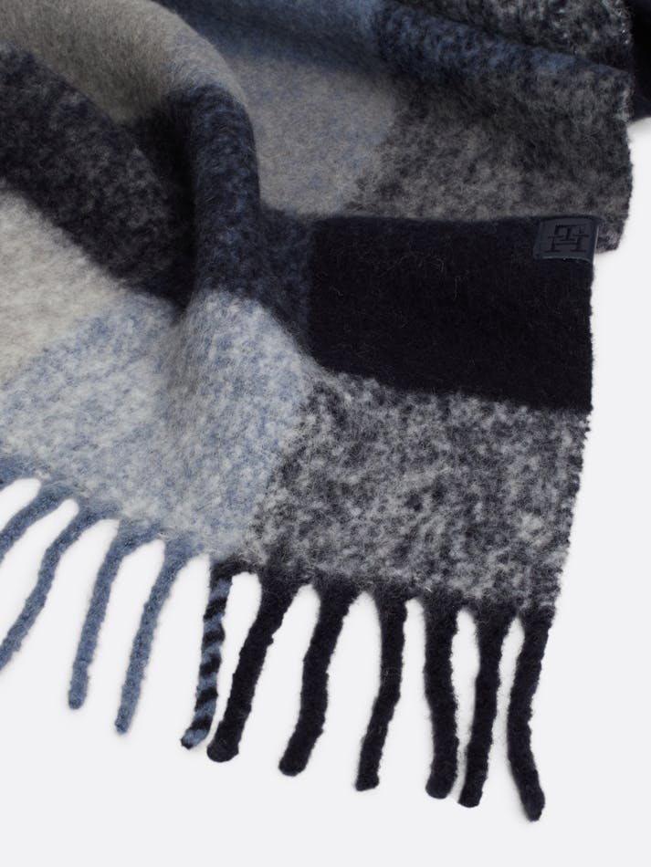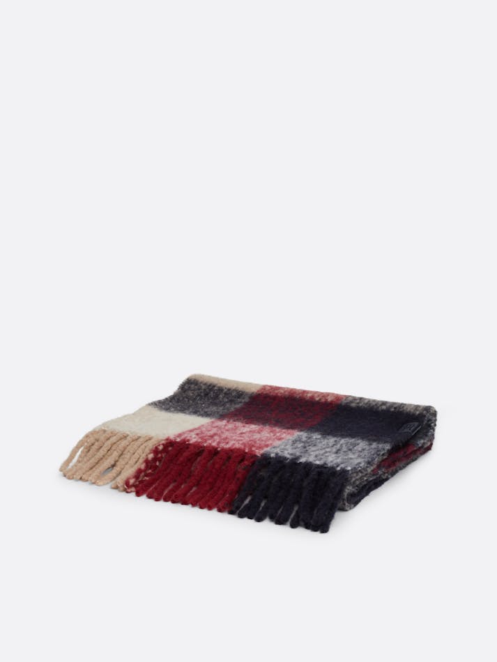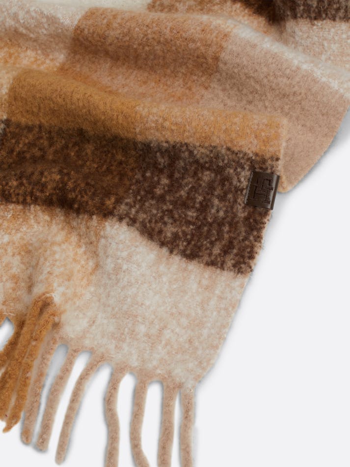 MIXED CHECK FLUFFY WOOL BLEND SCARF