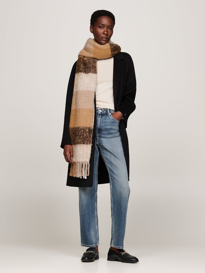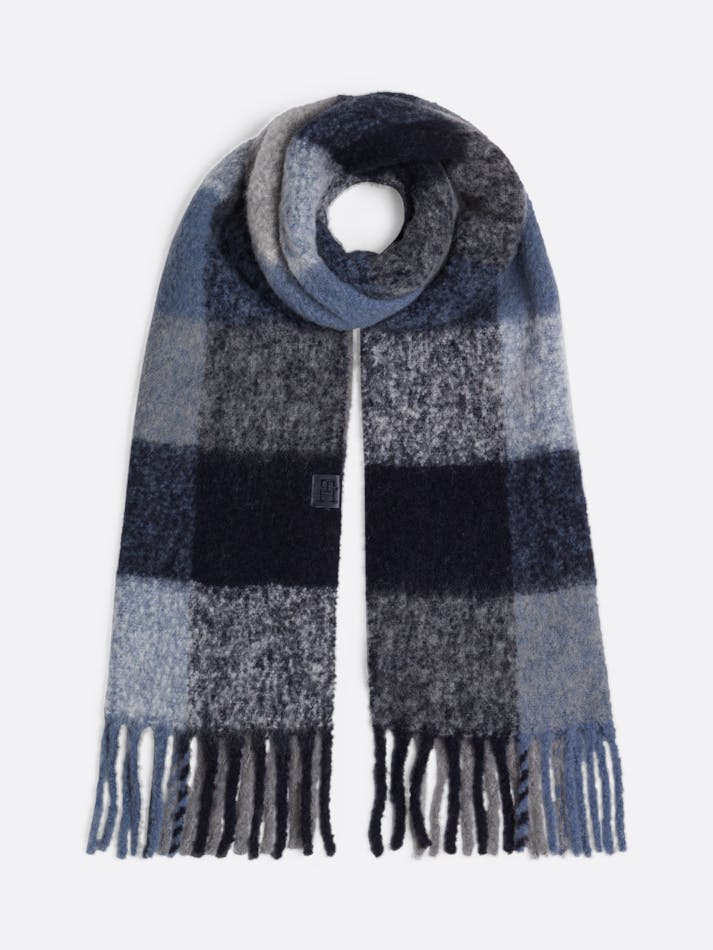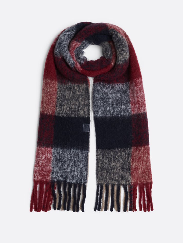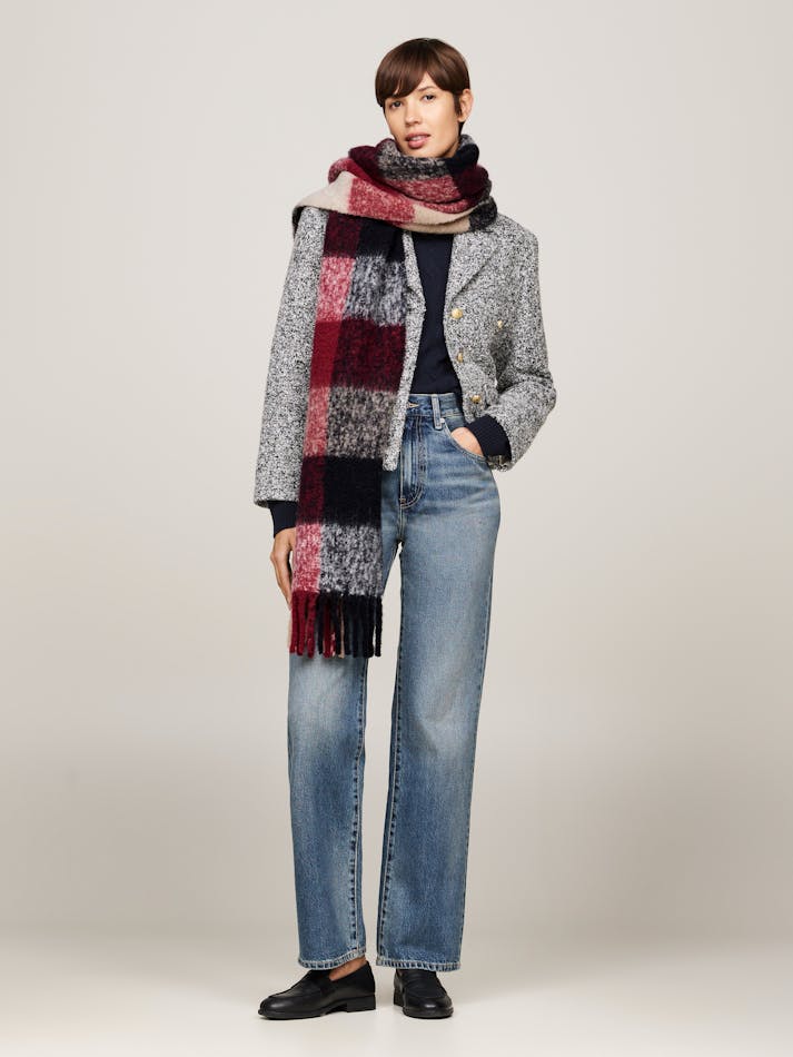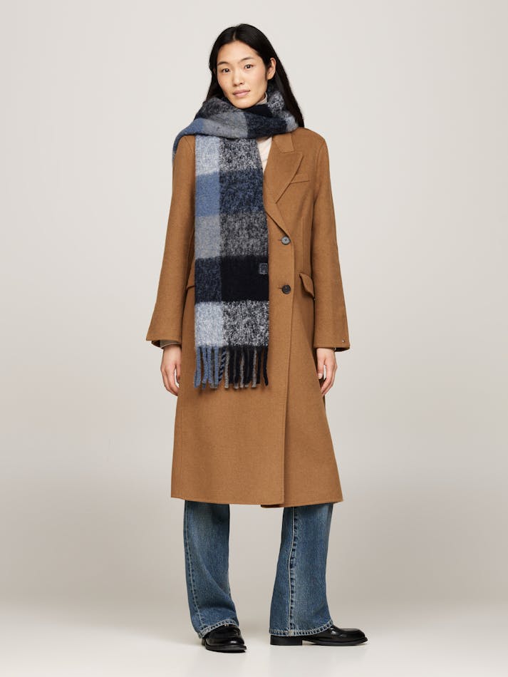 A mixed check design adds heritage flair to this wool-blend scarf, while the generous proportions are perfect for wrapping up warm.