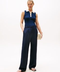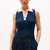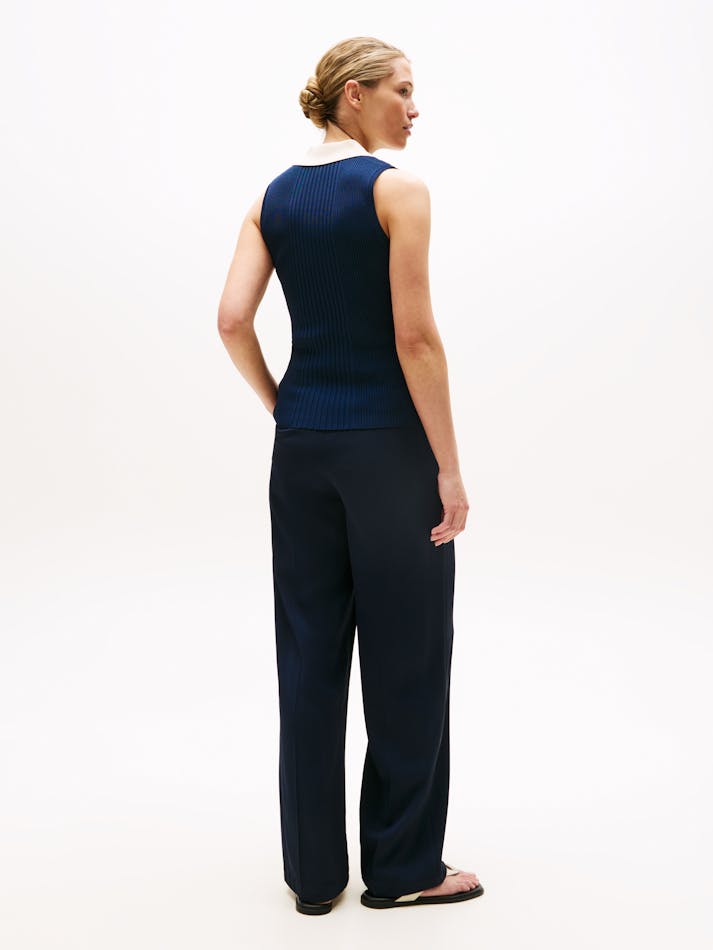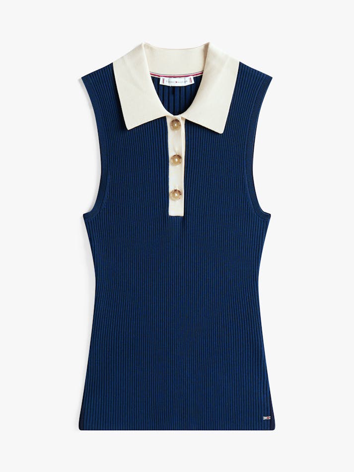 MIXED KNIT SLEEVELESS SLIM POLO JUMPER
