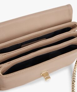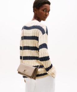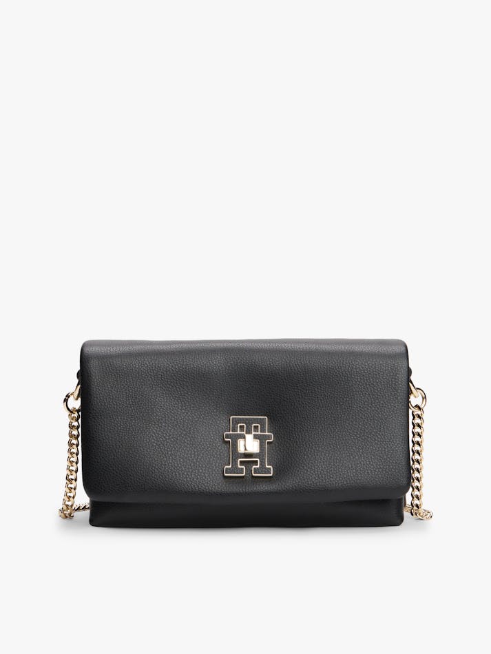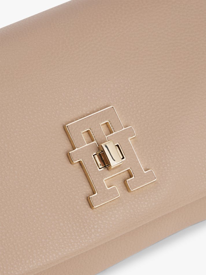 This chic bag is crafted with a luxe flat pebble-grain texture complemented by a gold-tone chain strap and TH monogram turn lock.