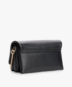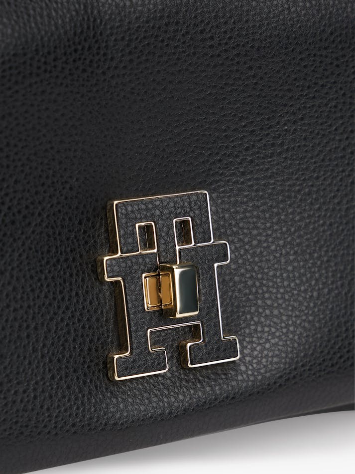 This chic bag is crafted with a luxe flat pebble-grain texture complemented by a gold-tone chain strap and TH monogram turn lock.