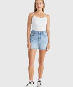A staple for any vintage-inspired wardrobe, these mom shorts feature the essential high waist, five pocket styling and iconic Tommy Jeans branding.