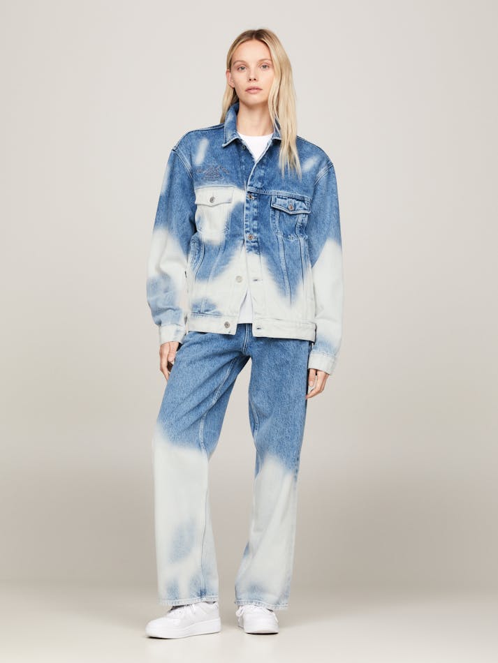 Playing on proportion and transeasonal layering, Tommy Collection by Tommy Jeans takes you on a coast-to-coast tour with an undercurrent of surf and skate. This denim trucker jacket in cotton has a ’90s-inspired silhouette and an Ombre design for a statement finish.