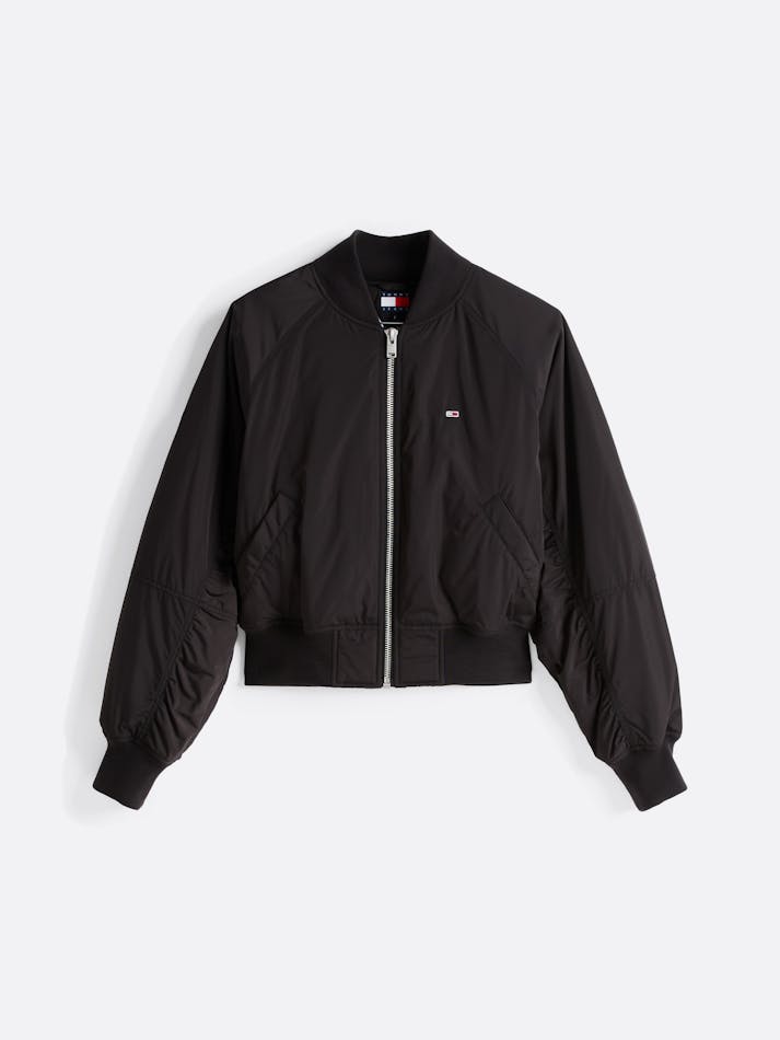 This classic bomber jacket features a water-repellent finish and insulating padding, upgrading a retro style for colder weather.