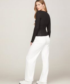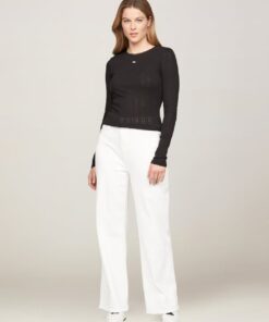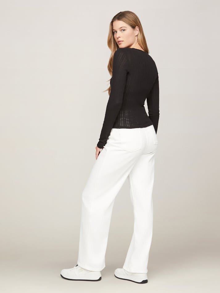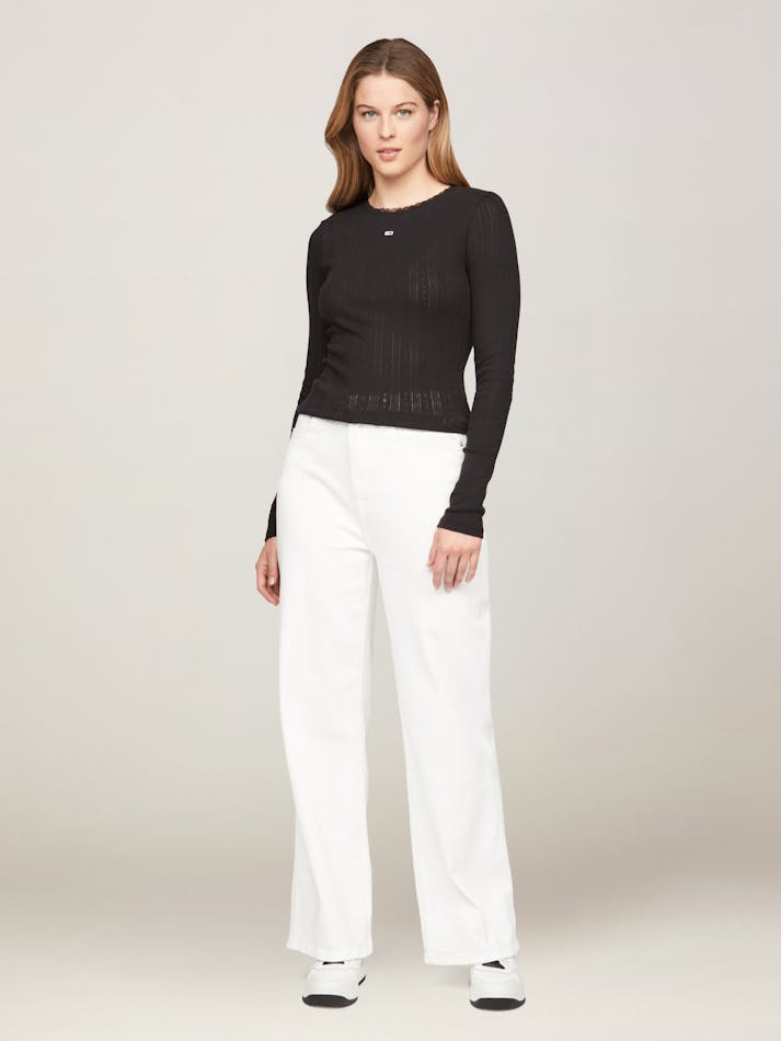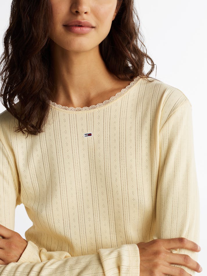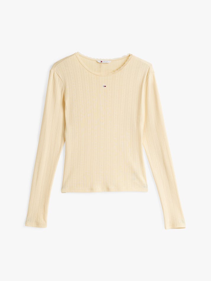 Dress in carefree style in this long-sleeved T-shirt, cut to a figure-framing slim fit and featuring an intricate pointelle design.