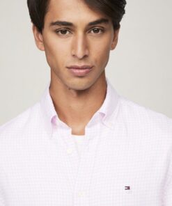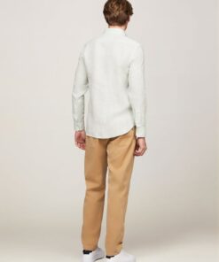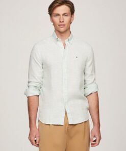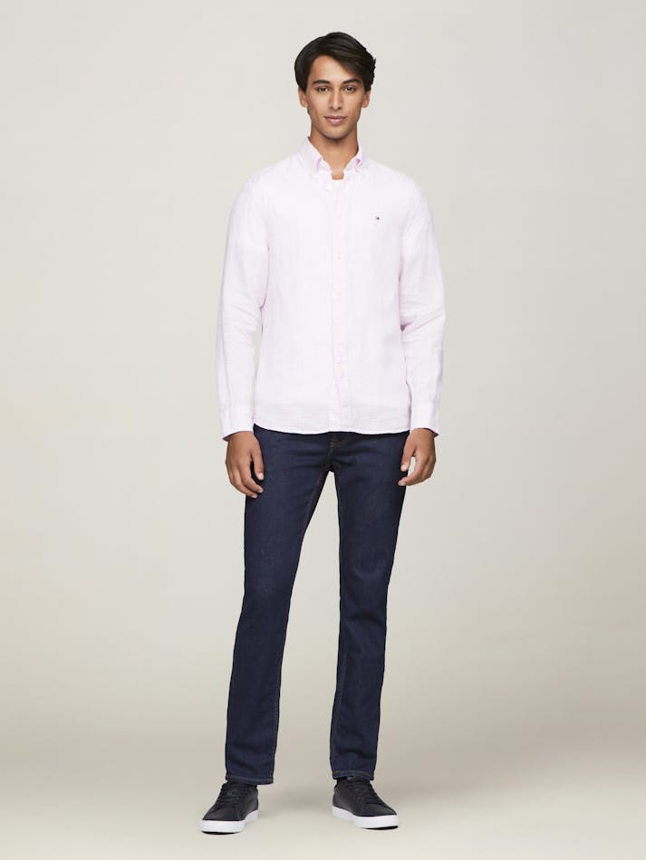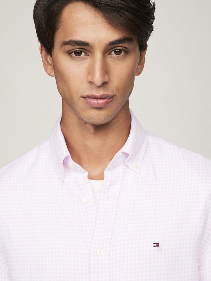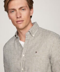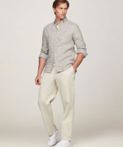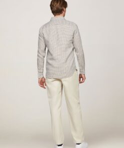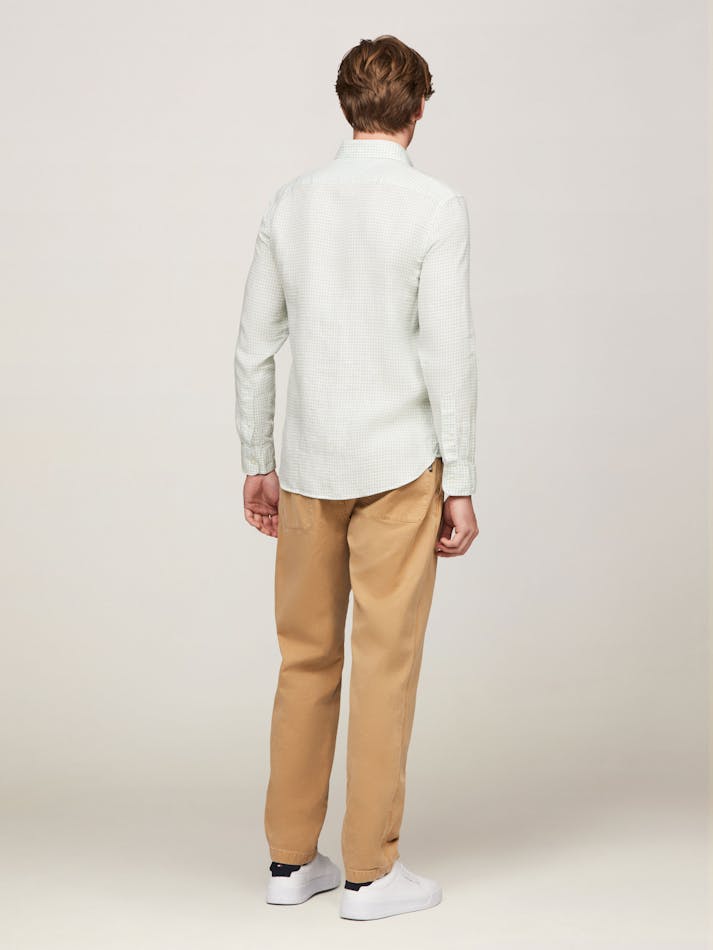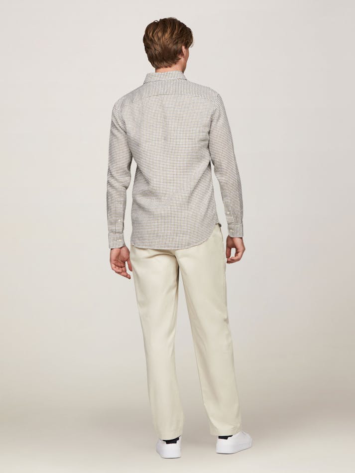 For smart casual-styling, this pure linen shirt is finished with a gingham check and signature flag embroidery on the chest.