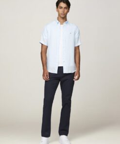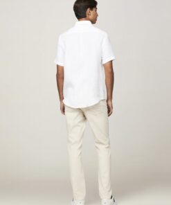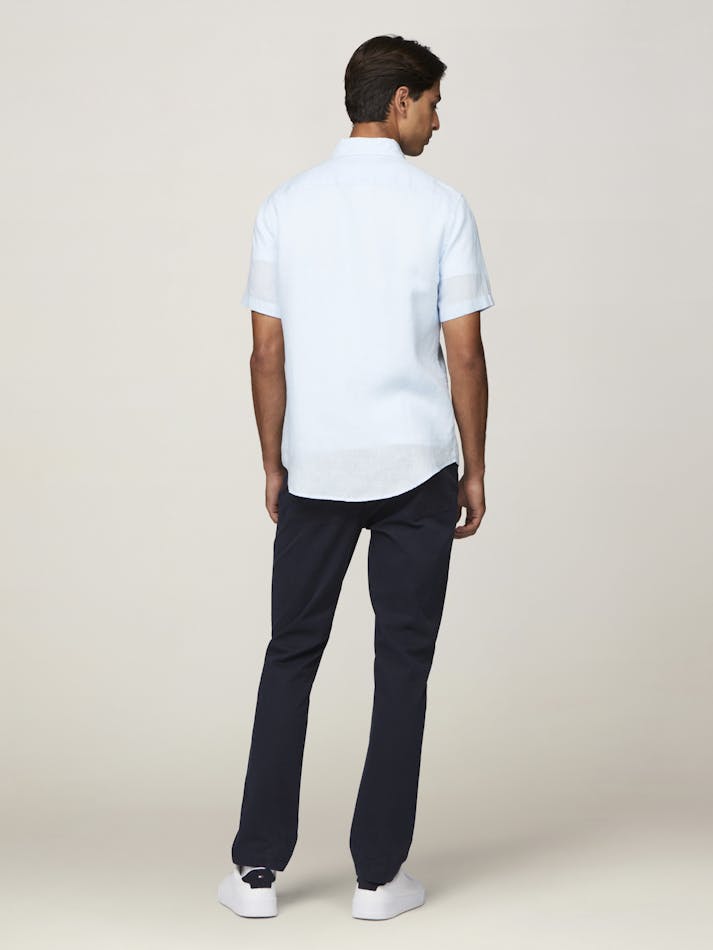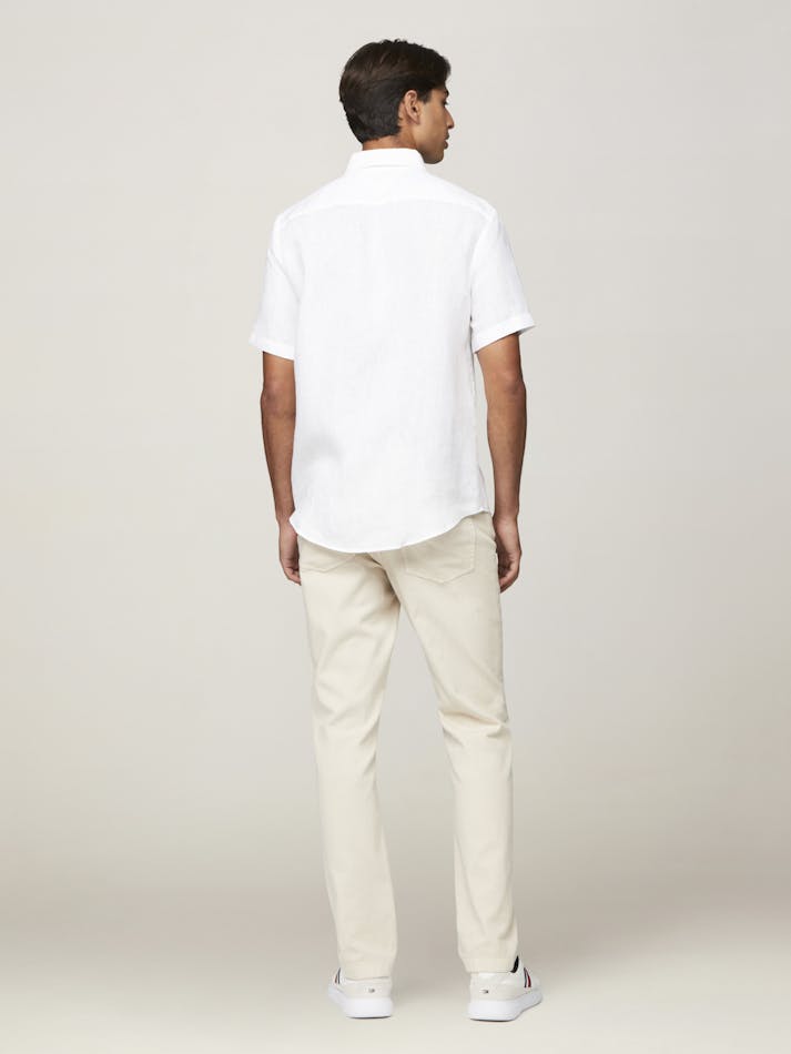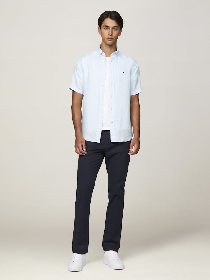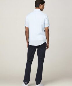Nail the smart casual dress code with this premium linen short sleeved shirt. Featuring a subtle check all over, this style features contrast buttons down the front and on the collar, and a curved hemline making tucking into pants easy and neat.