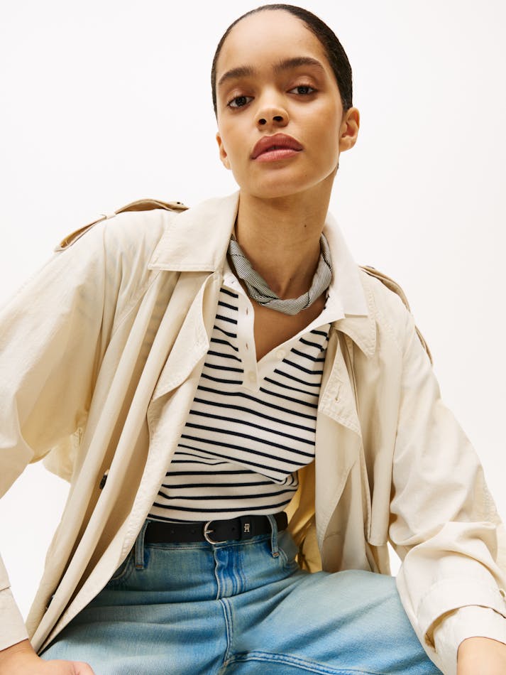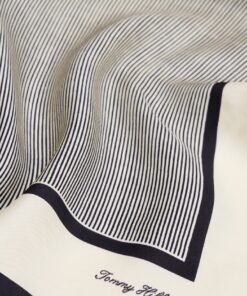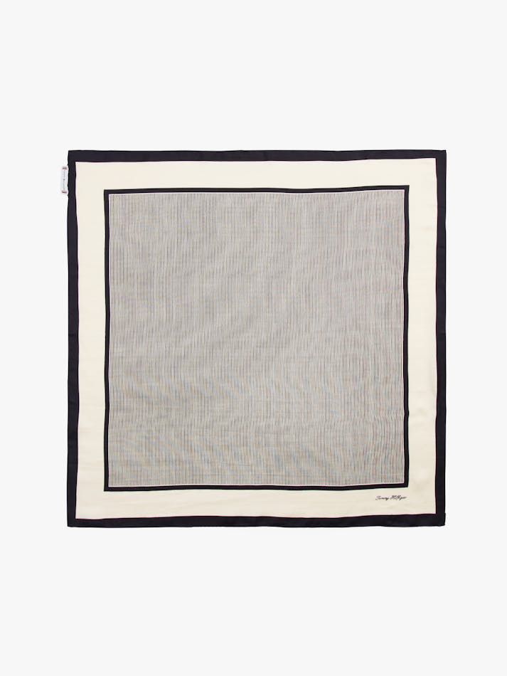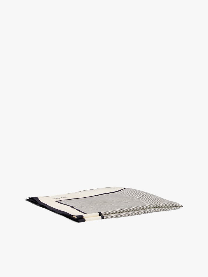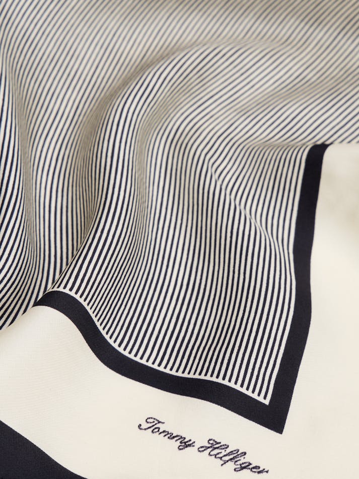 Add a touch of pattern to your outfit with this luxurious pure silk square scarf featuring timeless stripes within a contrasting border.