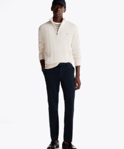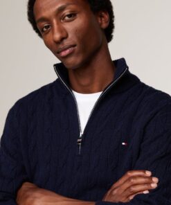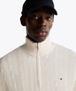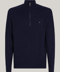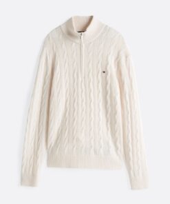 Add a layer of stylish warmth with this cable-knit jumper, crafted from pure wool and featuring a zip-up mock turtleneck.