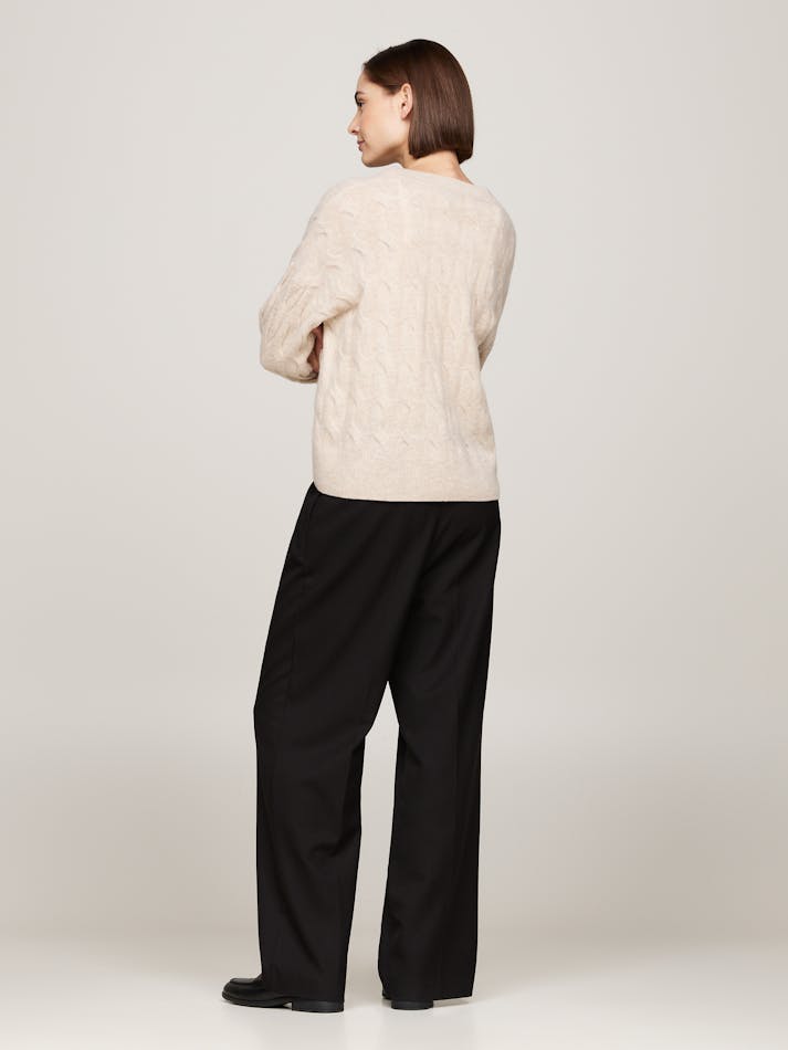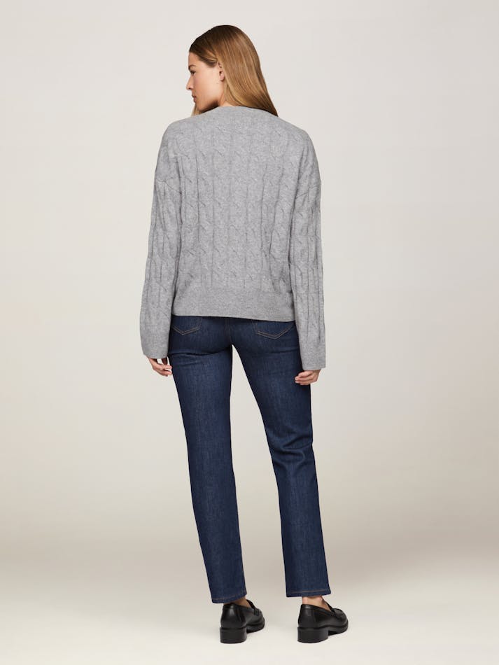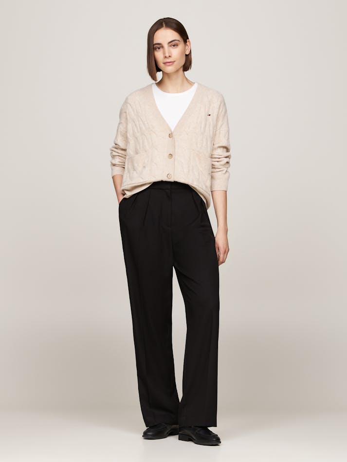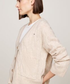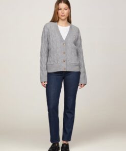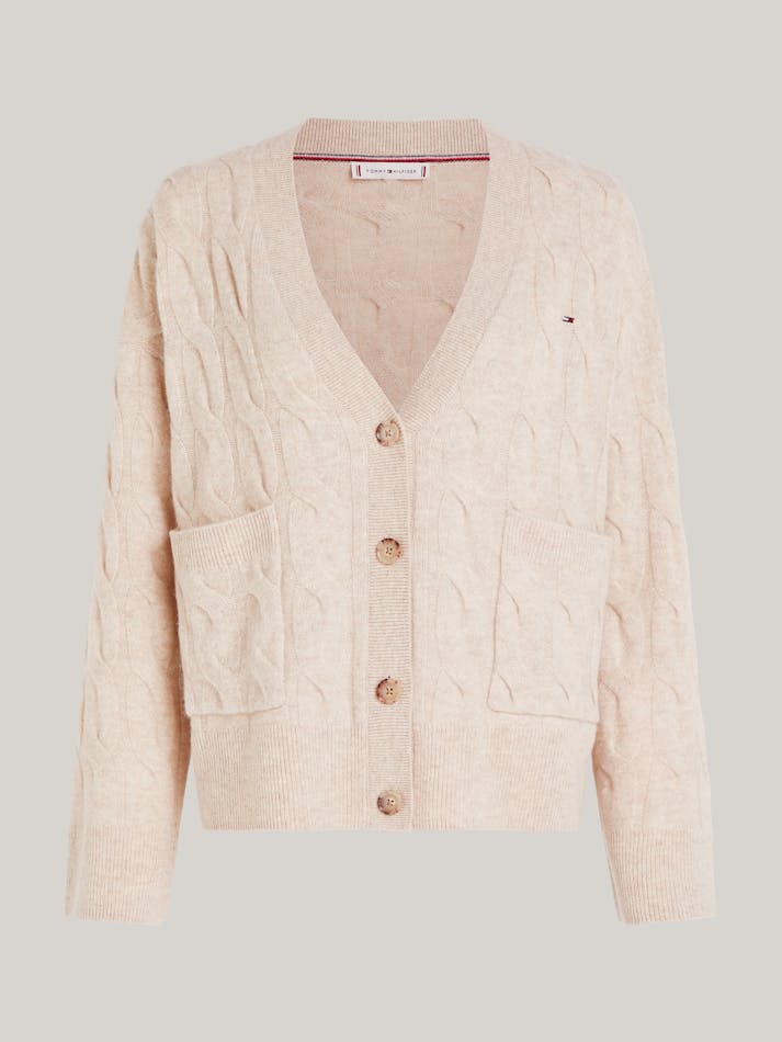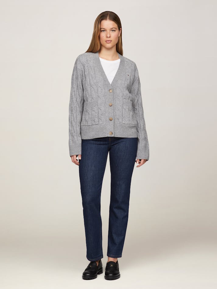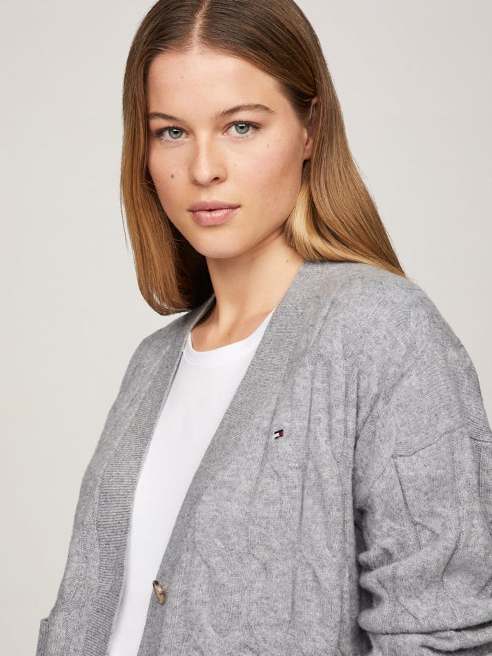 This cable-knit cardigan is made from wool to an oversized fit, with slightly dropped shoulders adding to the slouchy vibe.