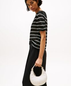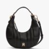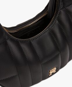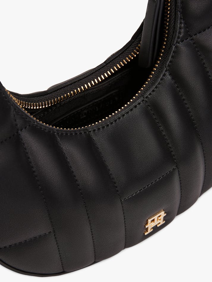 This crossbody shoulder bag blends practicality and elegance, with its quilted detailing, curved silhouette and gleaming TH monogram plaque.