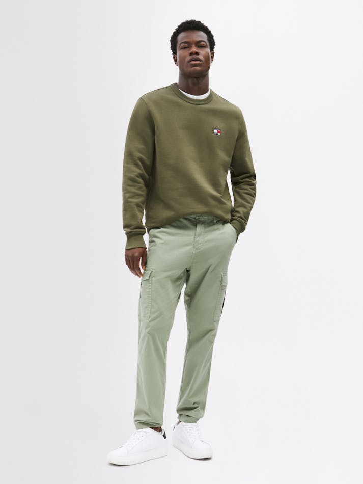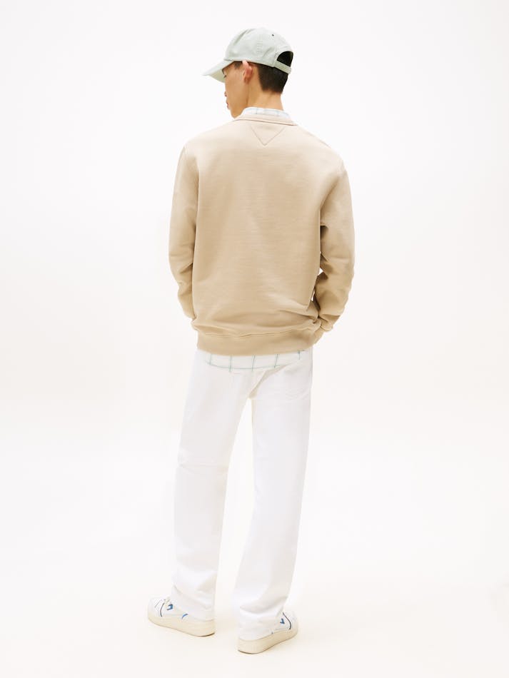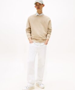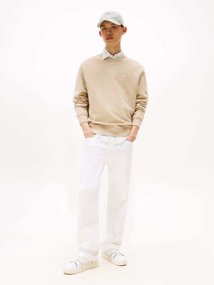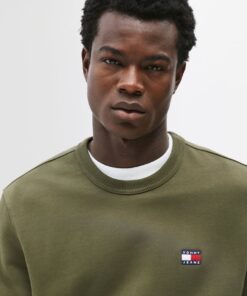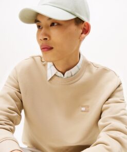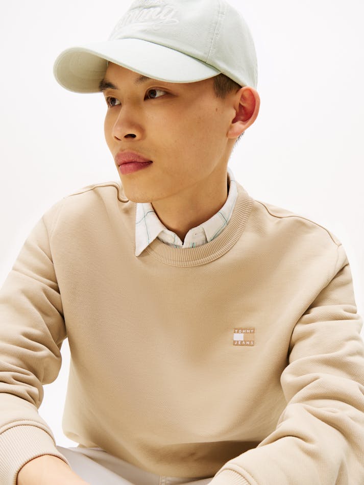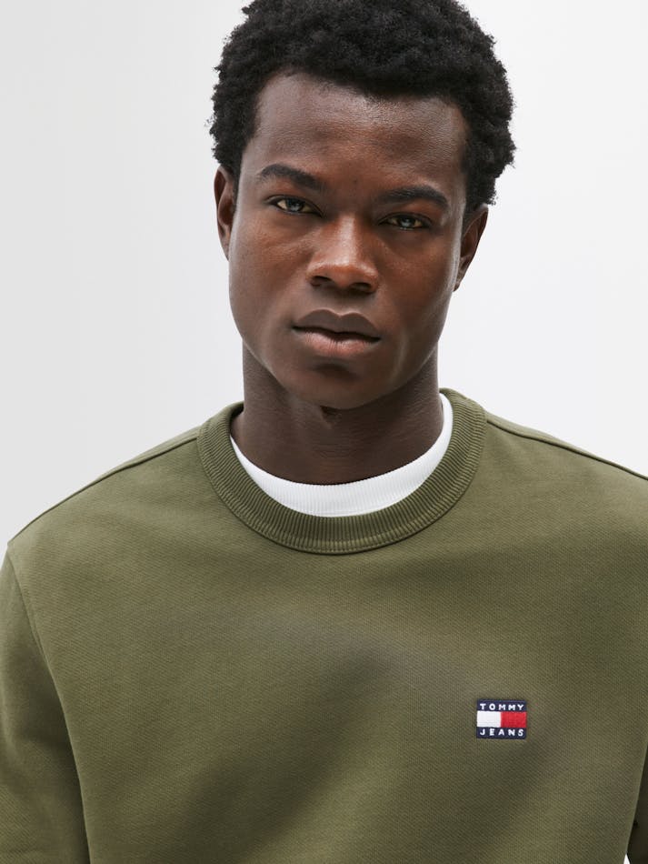 Offering cosy casual warmth, this crew neck sweatshirt is made from pure cotton fleece and showcases a Tommy Jeans badge on the chest.
