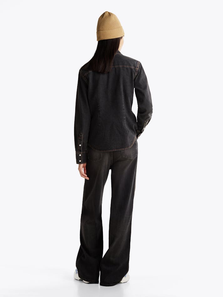 Pearled snap buttons pop against the washed finish of this Western denim shirt for a fresh yet vintage-inspired look.