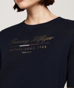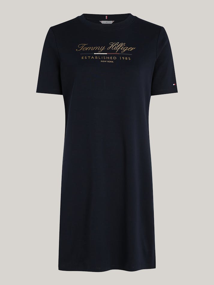Opt for an effortless Tommy look with this t-shirt dress, made from pure cotton and finished with a metallic logo print on the chest.