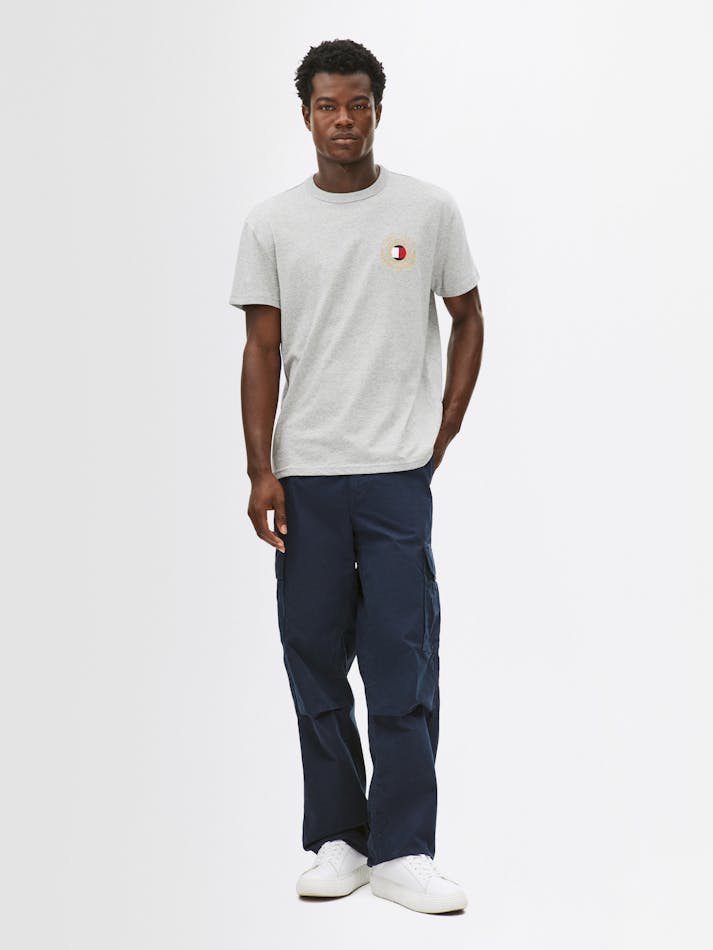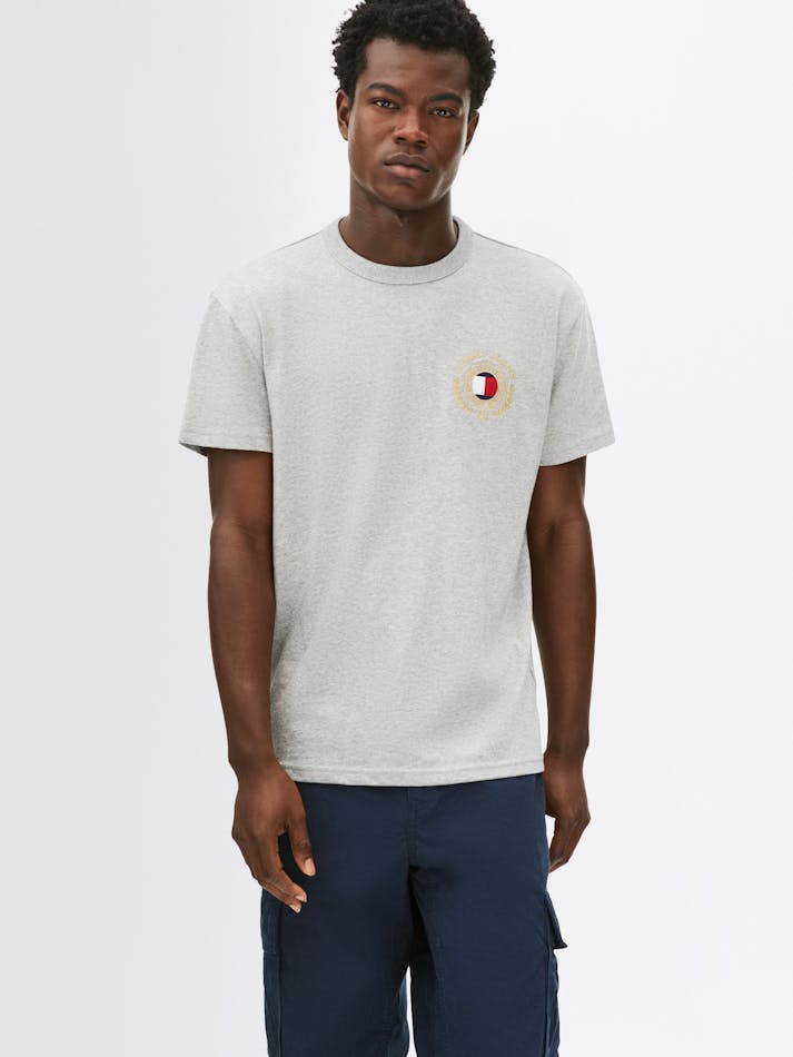 This tee features a sleek crest embroidery on the chest, adding a touch of cool to a casual wear classic.