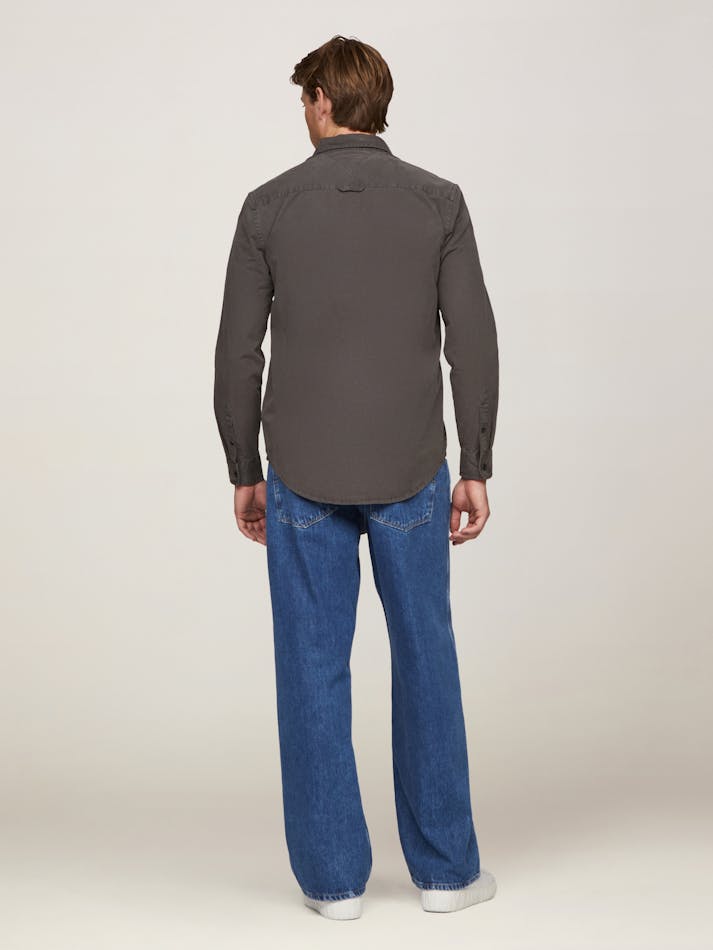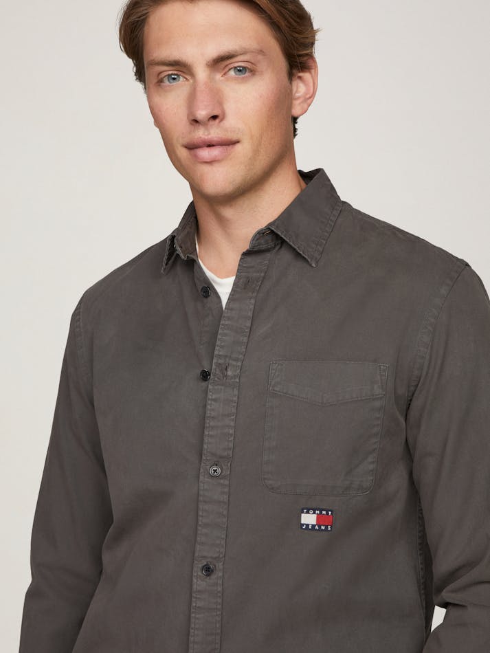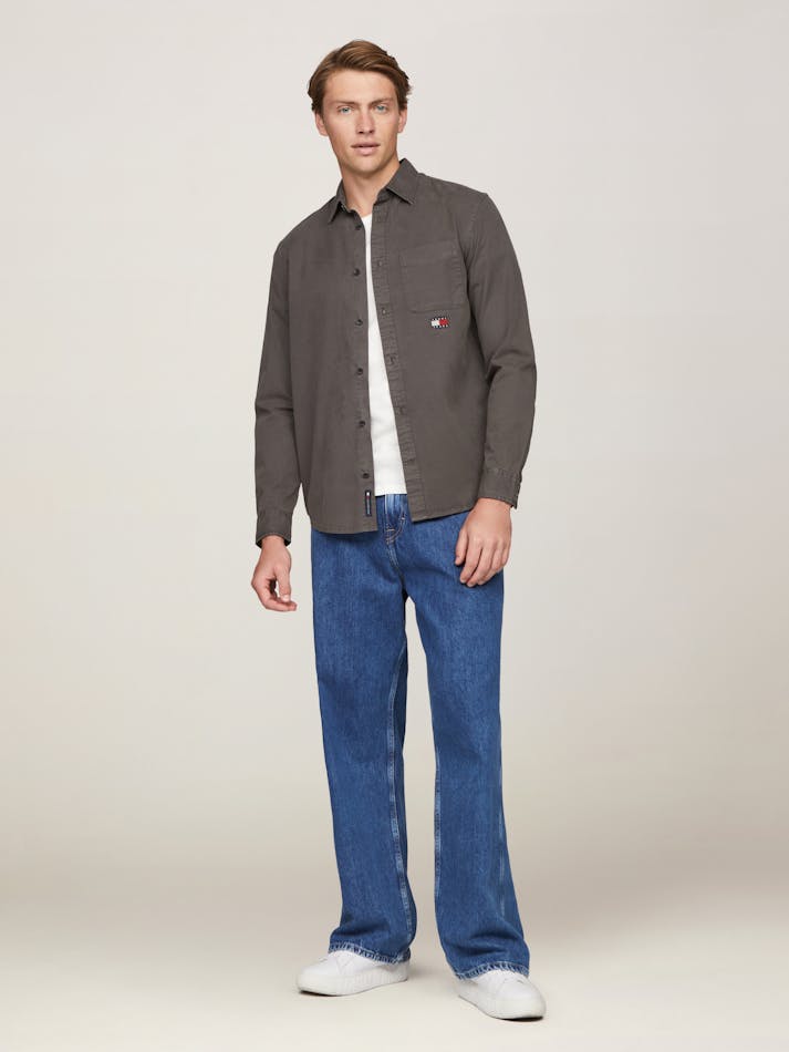 Elevate your style with this washed cotton button-up shirt, with a chest pocket and classic Tommy Jeans branding.