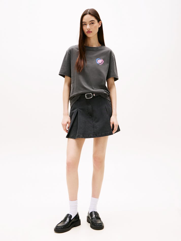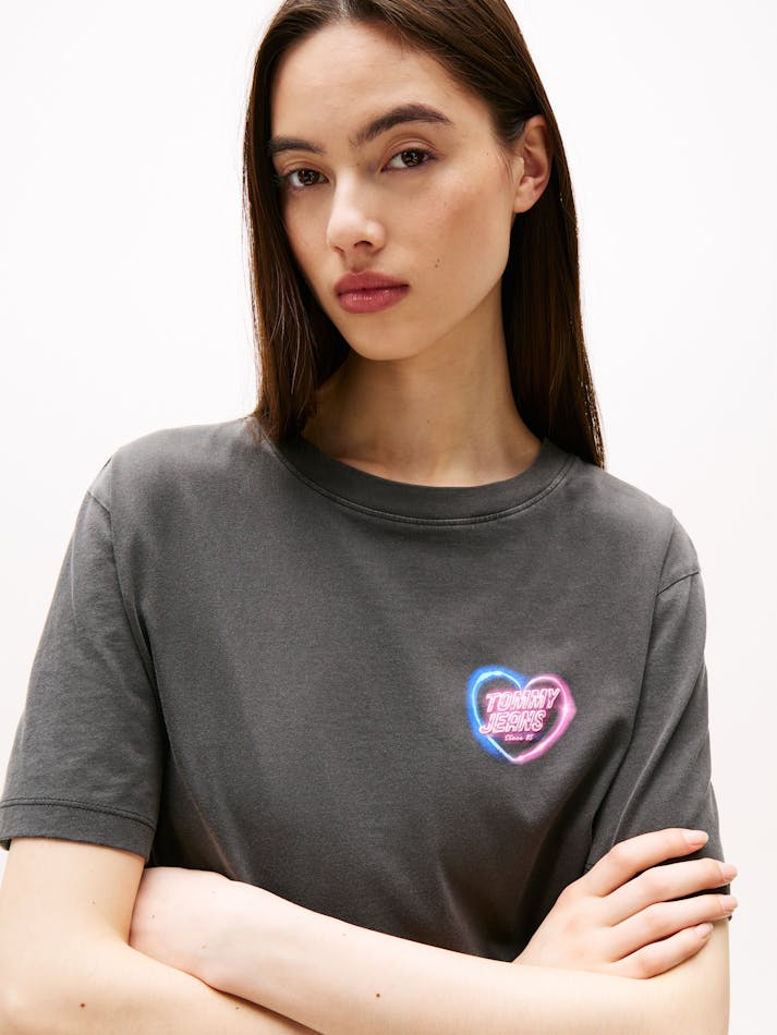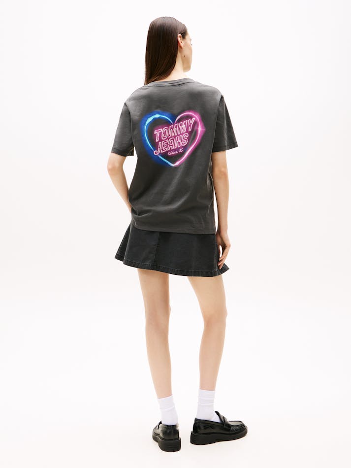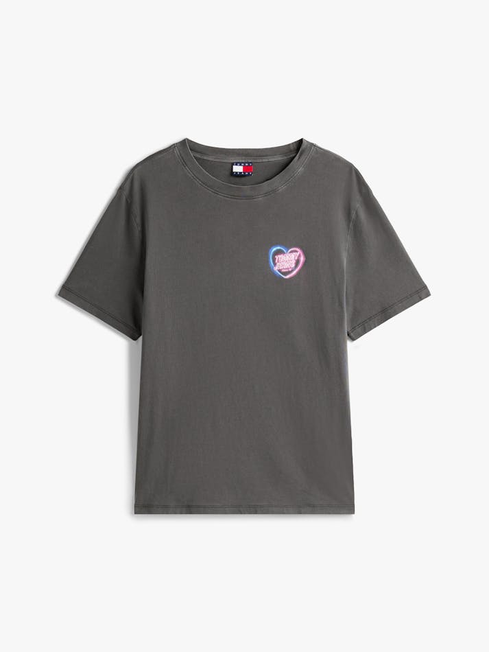This relaxed tee brings vintage vibes with its neon logo prints and Tommy Jeans branding, perfect for a fresh yet casual look.