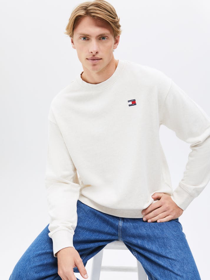 Classic basics at their best, this crew neck sweatshirt is made from a comfortable cotton blend and complete with a Tommy Jeans badge on the chest.
