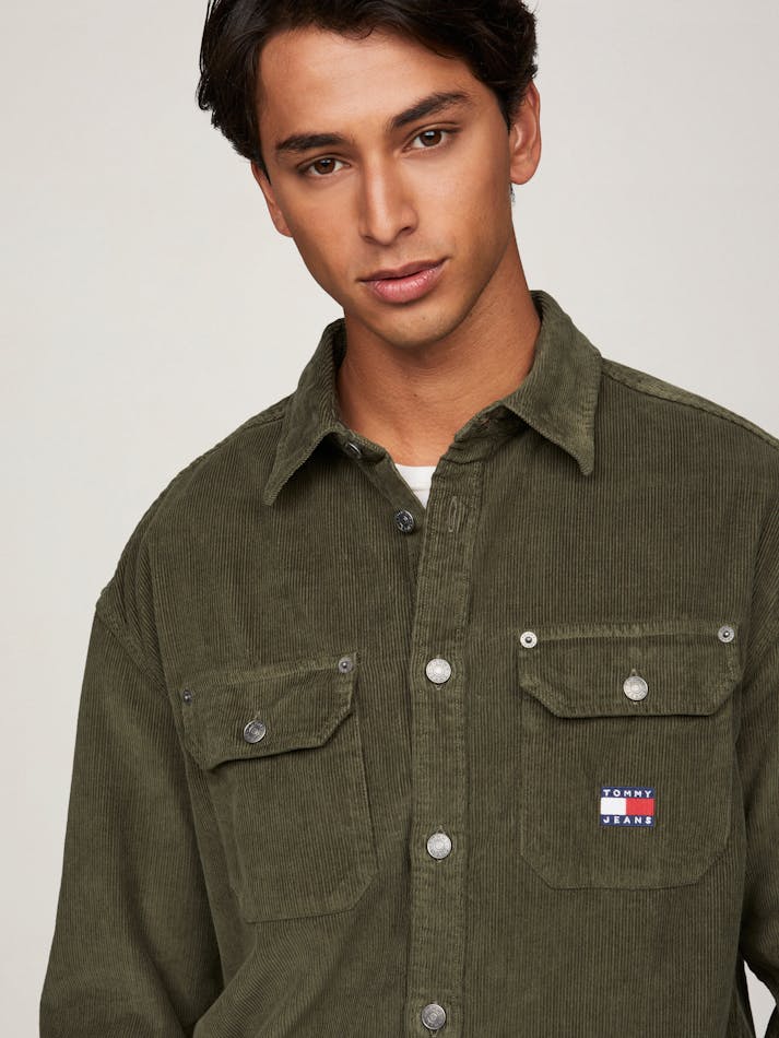Endlessly versatile, this cord shirt is a reliable choice for creating your day-to-day looks. With buttoned flap pockets on the chest and a sharp collar, the look is finished by signature Tommy Jeans branding.