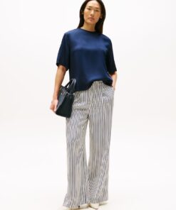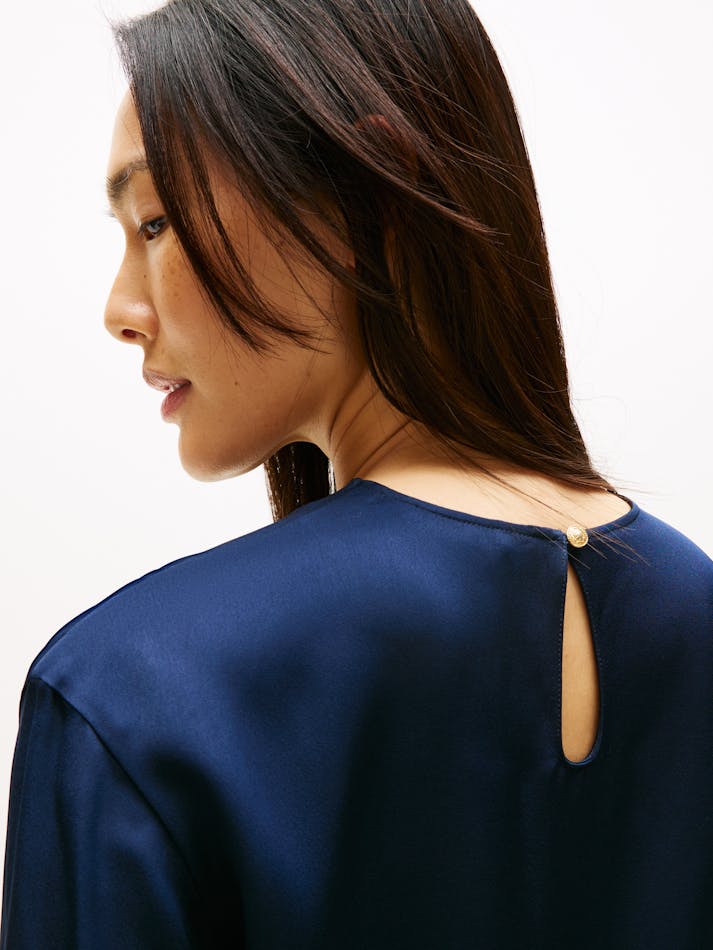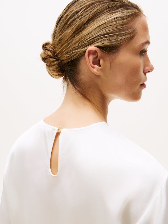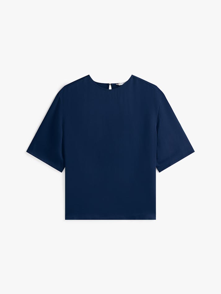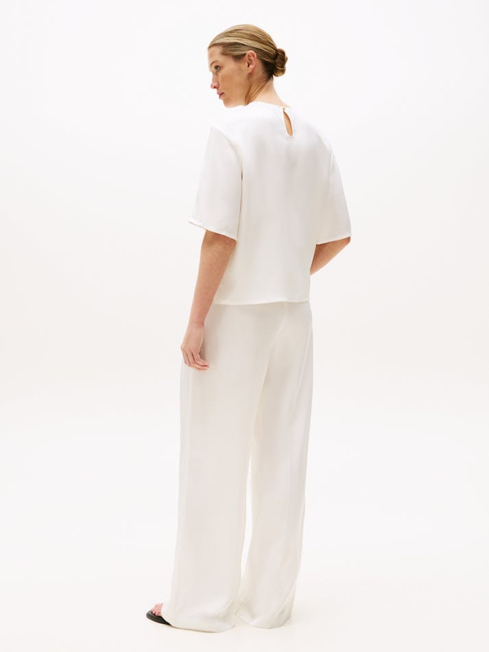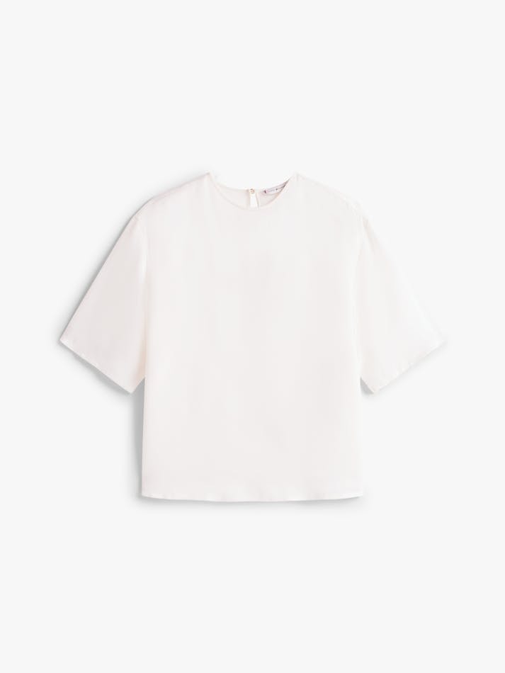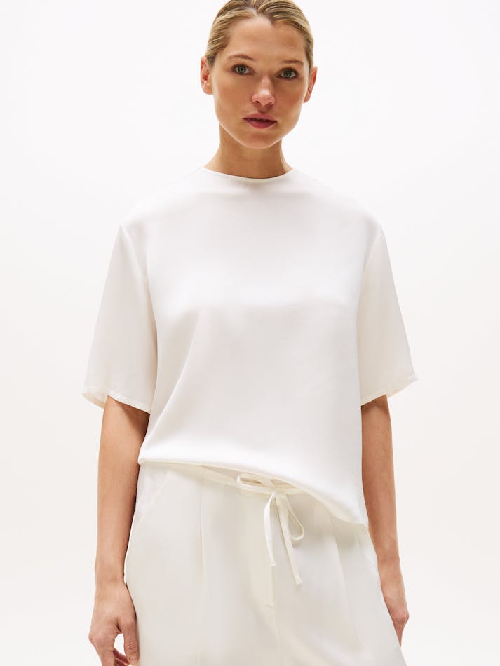 This classic T-shirt is elevated by its soft drape and luxe sateen fabric, counterbalanced by an easy-going relaxed fit and dropped shoulders.