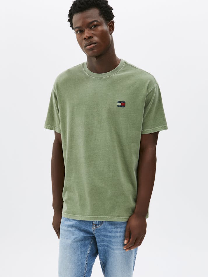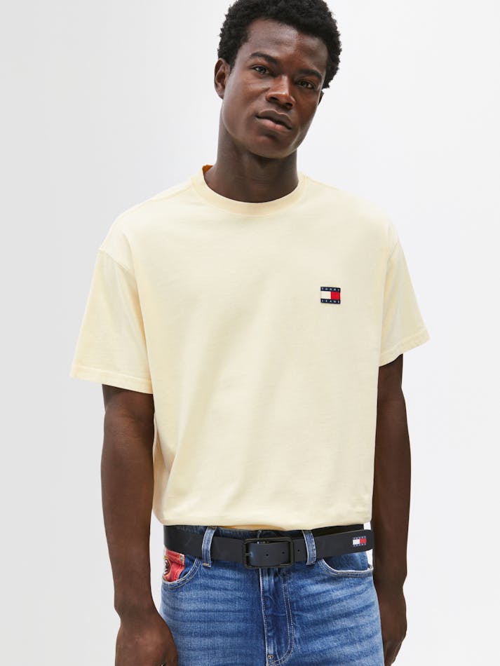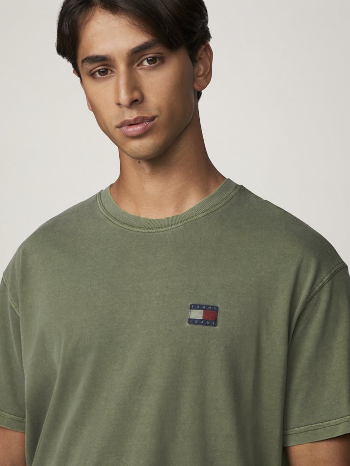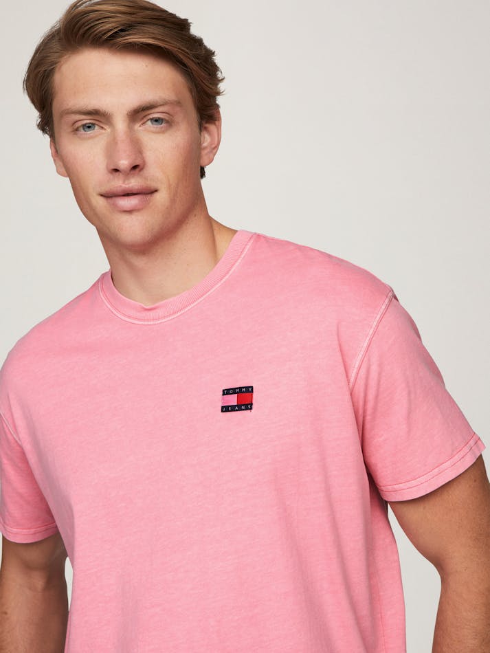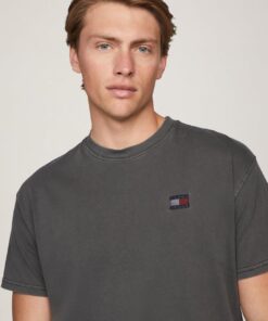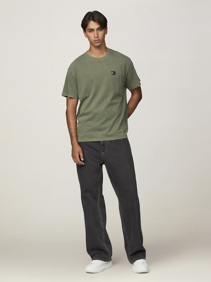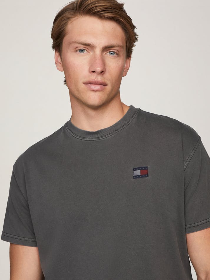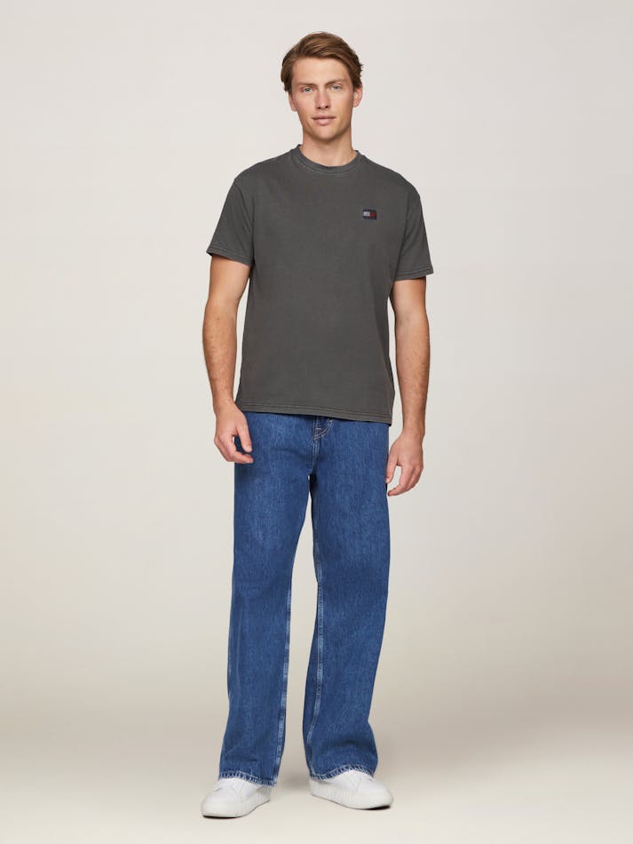 Garment washing gives this relaxed cotton tee a vintage feel, finished with the Tommy Jeans flag label on the chest.