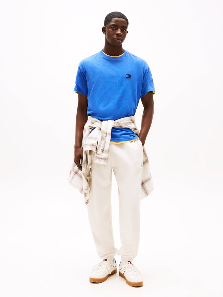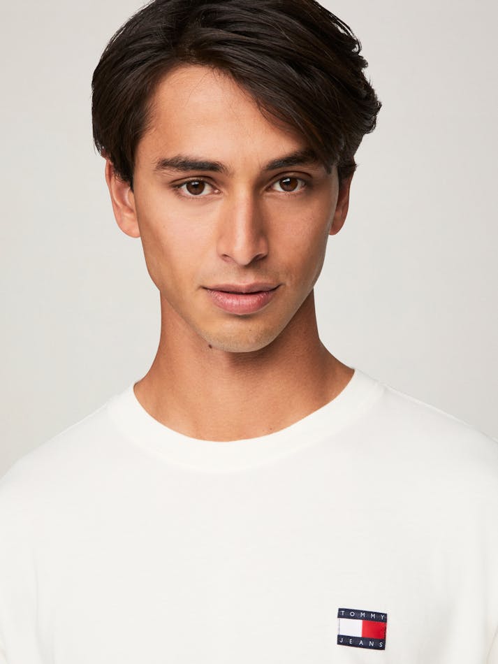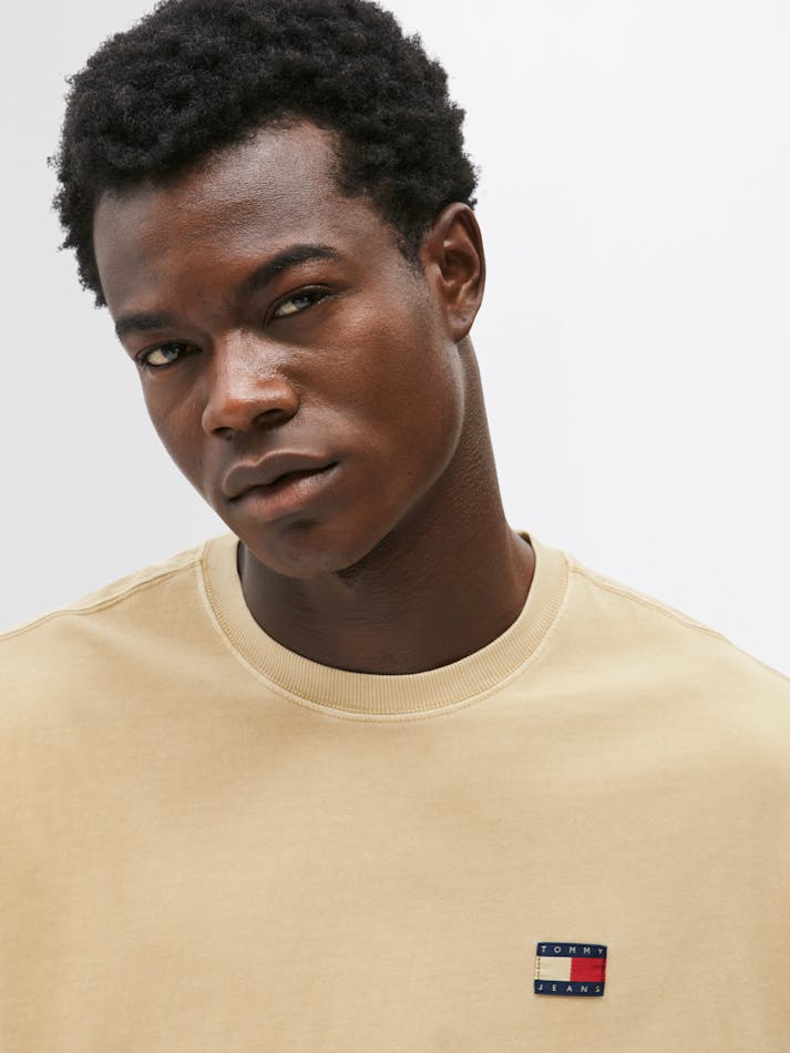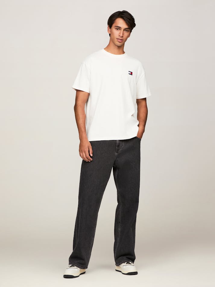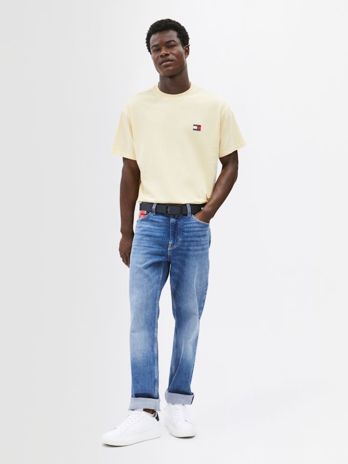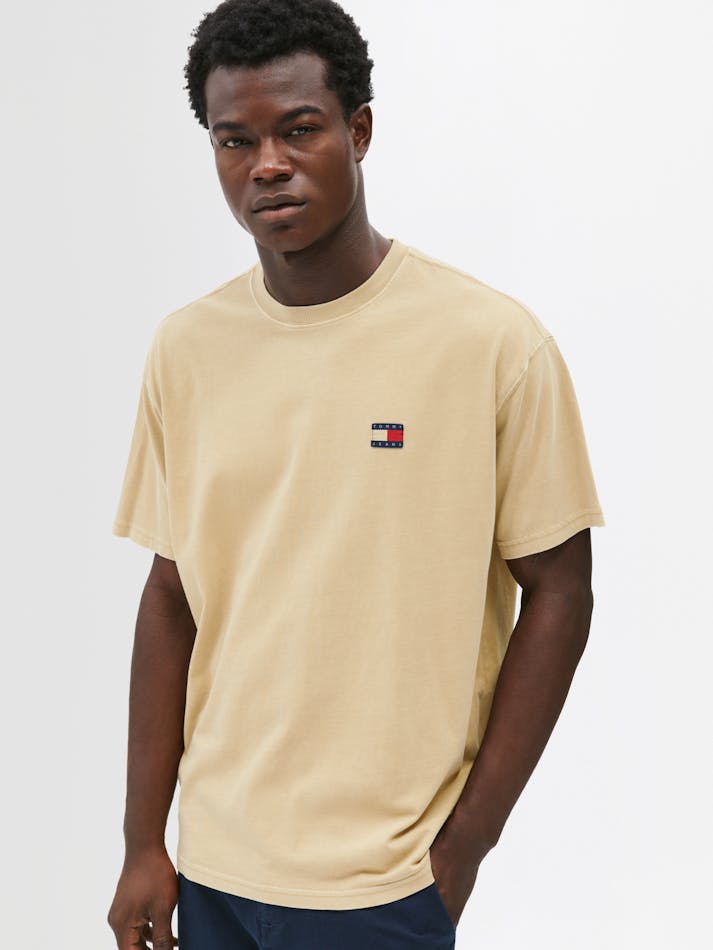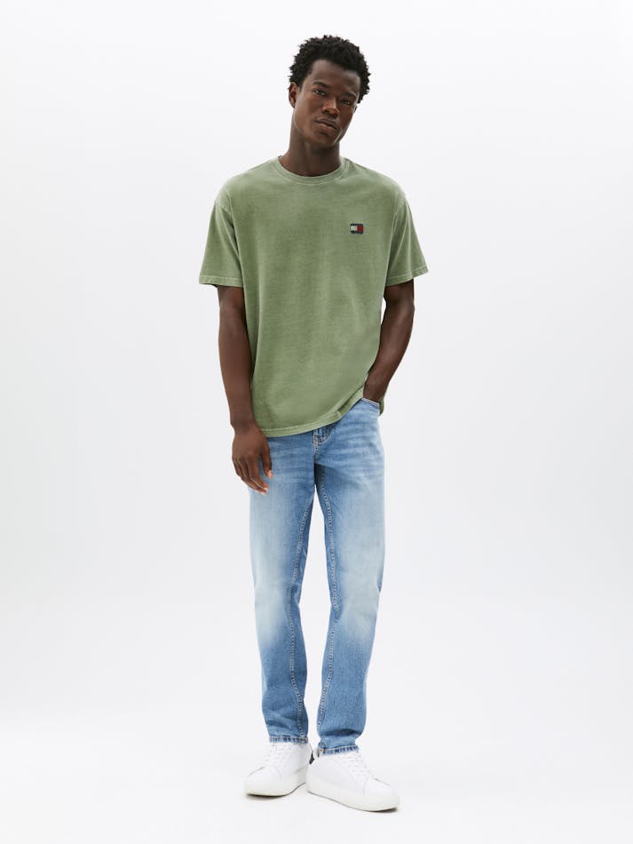 Garment washing gives this relaxed cotton tee a vintage feel, finished with the Tommy Jeans flag label on the chest.