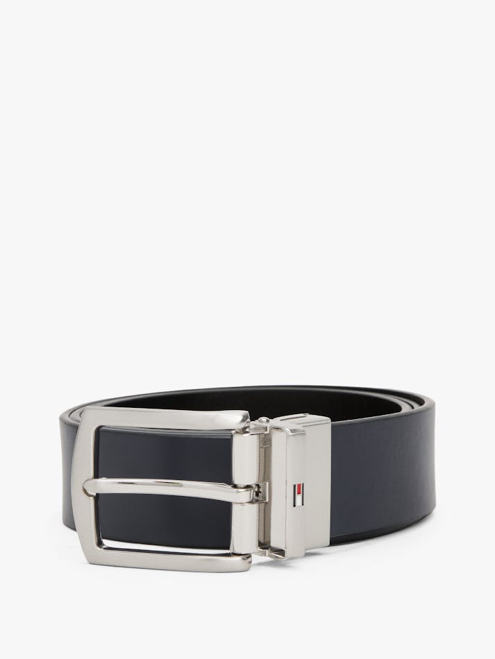Get two looks in one with this reversible leather belt that showcases luxe hardware and a touch of signature branding.
