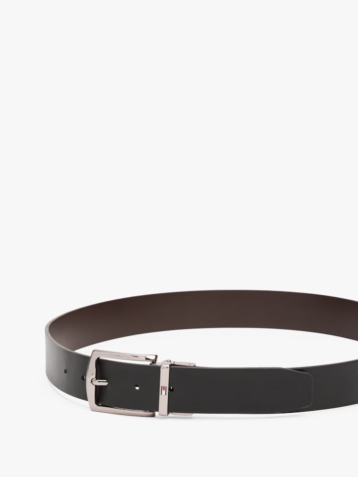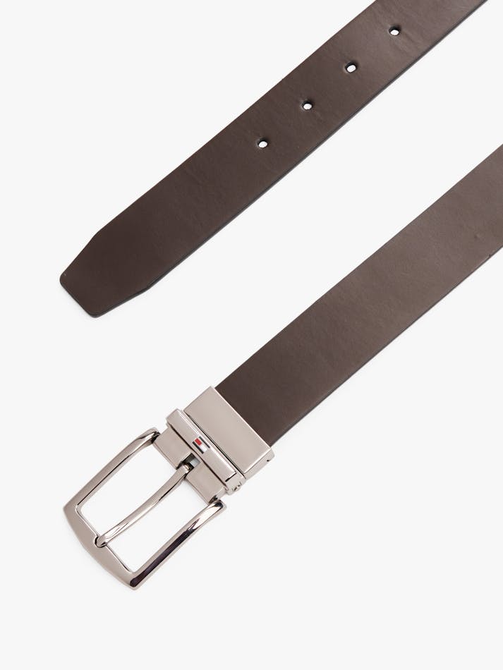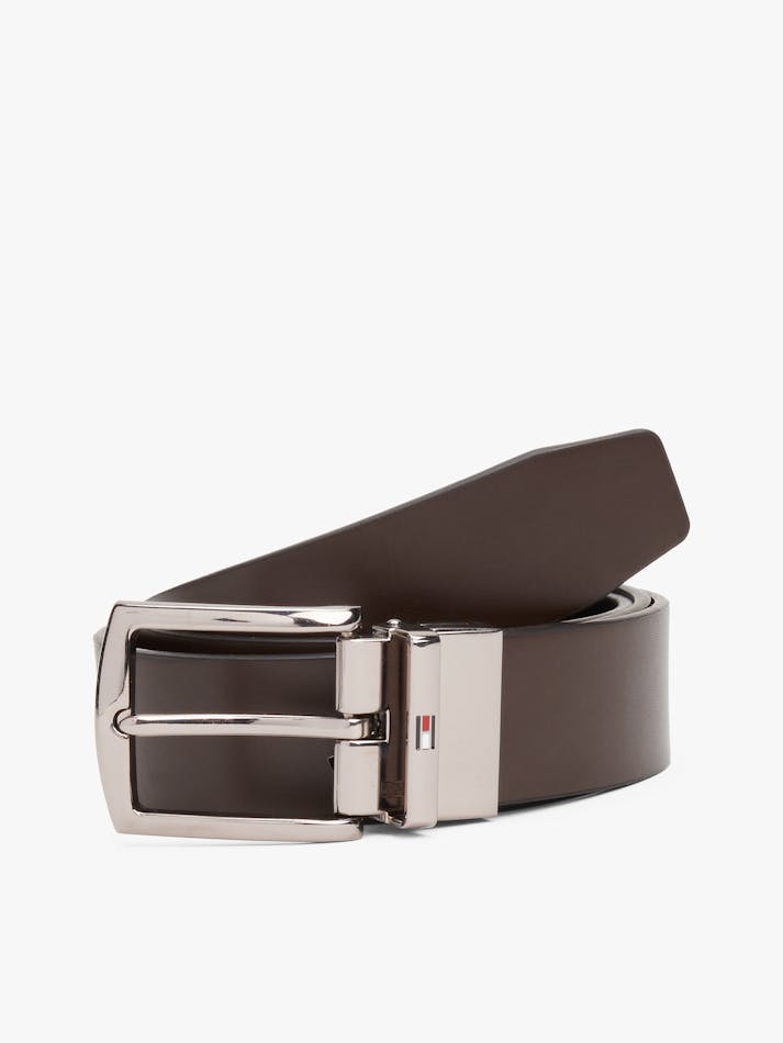 Get two looks in one with this reversible leather belt that showcases luxe hardware and a touch of signature branding.