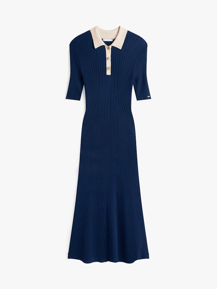 This maxi dress is crafted from rib-knit viscose to a form-fitting silhouette, while the contrast polo collar adds a sport-informed finish.