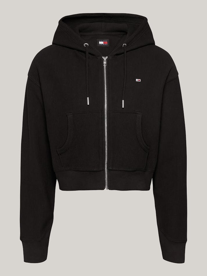 RIBBED OTTOMAN CROPPED ZIP-THRU HOODIE
