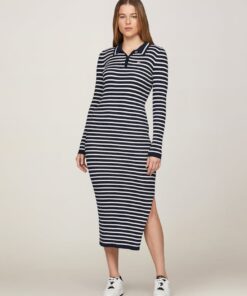 Channel a casual aesthetic in this midi polo dress featuring a ribbed texture and a flattering three-button placket.