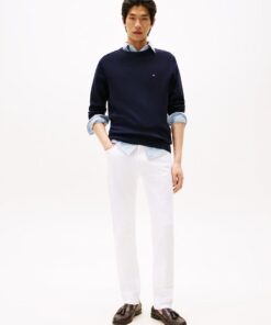 Best paired with a collared shirt, or a strong staple on its own, this crew neck sweatshirt is a transeasonal staple for the modern gentleman. The long-sleeve style is crafted with secure rib-knit finishes to the collar, cuffs and hem, complete with Tommy Hilfiger’s iconic flag embroidered to the chest.