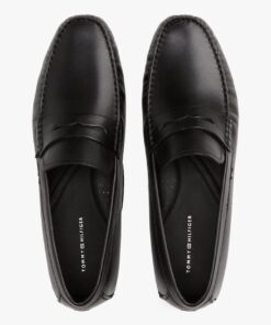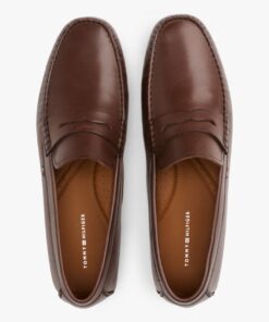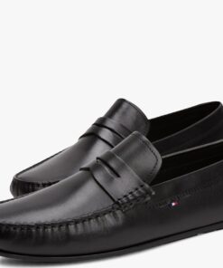 Slip on these leather loafers for a classic casual look with their top-stitched seam around the toe and strap across the top.
