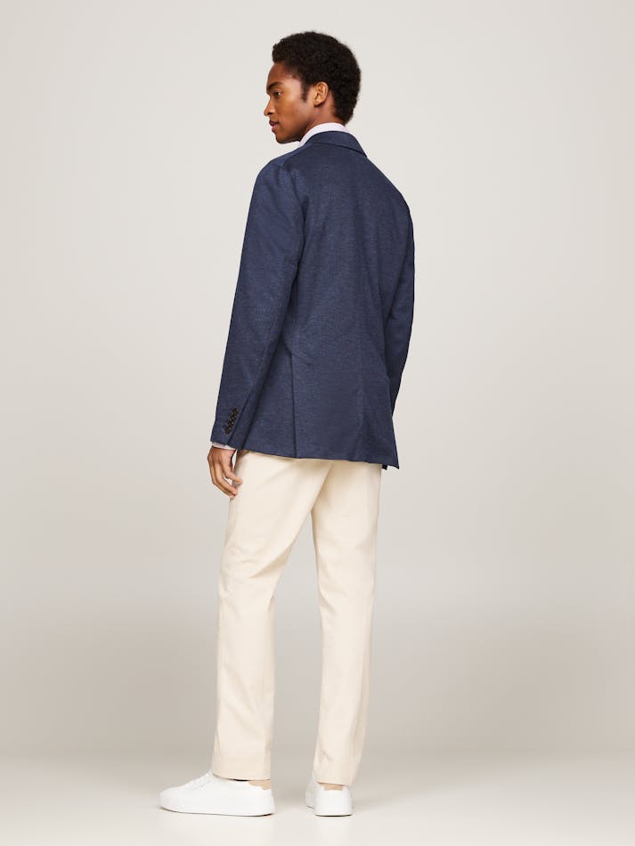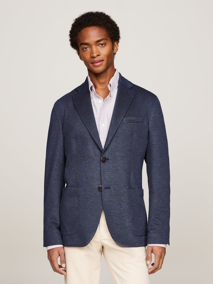Combining soft materials in neutral colours, easy closures and clean lines, the Smart Casual collection is tailor-made for professional days and informal nights. Made from stretch jersey, this sharp, single-breasted blazer brings flexibility and a subtly laidback feel to your formal looks.