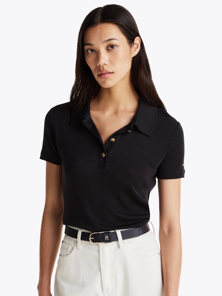SLIM FIT GOLD-TONE BUTTON POLO SHIRT