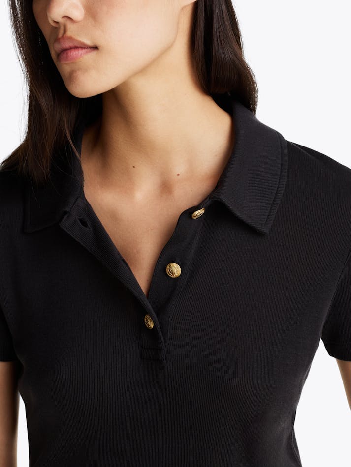 An elevated take on a casual staple, this polo shirt is made to a sleek slim fit and finished with gold-tone buttons.