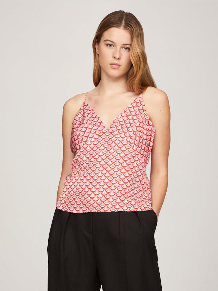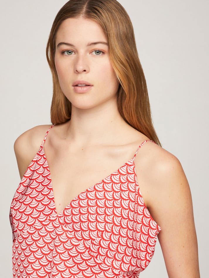 Switch on vacation mode with this breezy summer top, crafted from viscose for beautiful drape and feel. This top features delicate straps and a charming all-over scallop print.