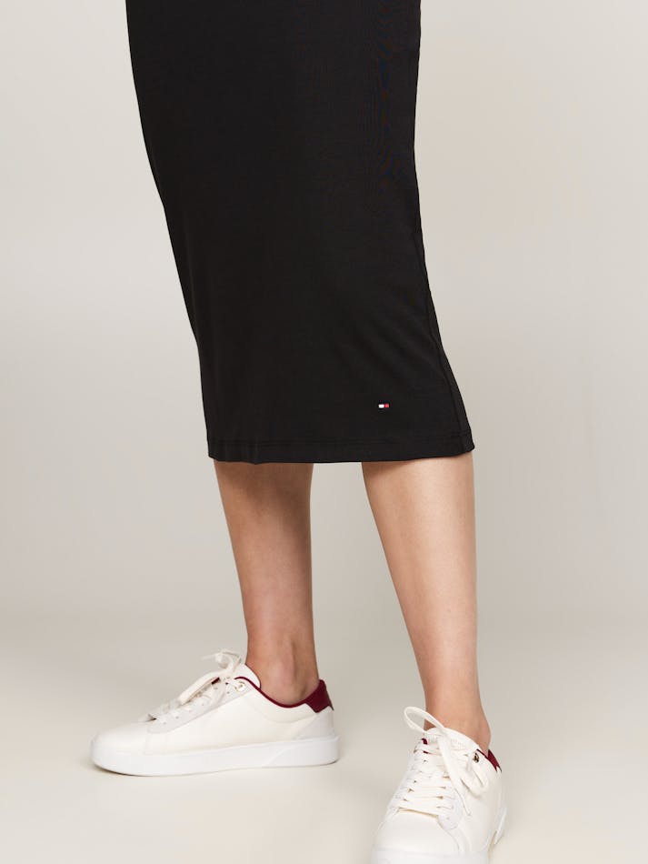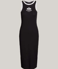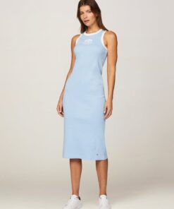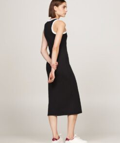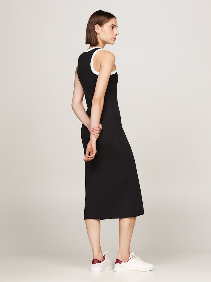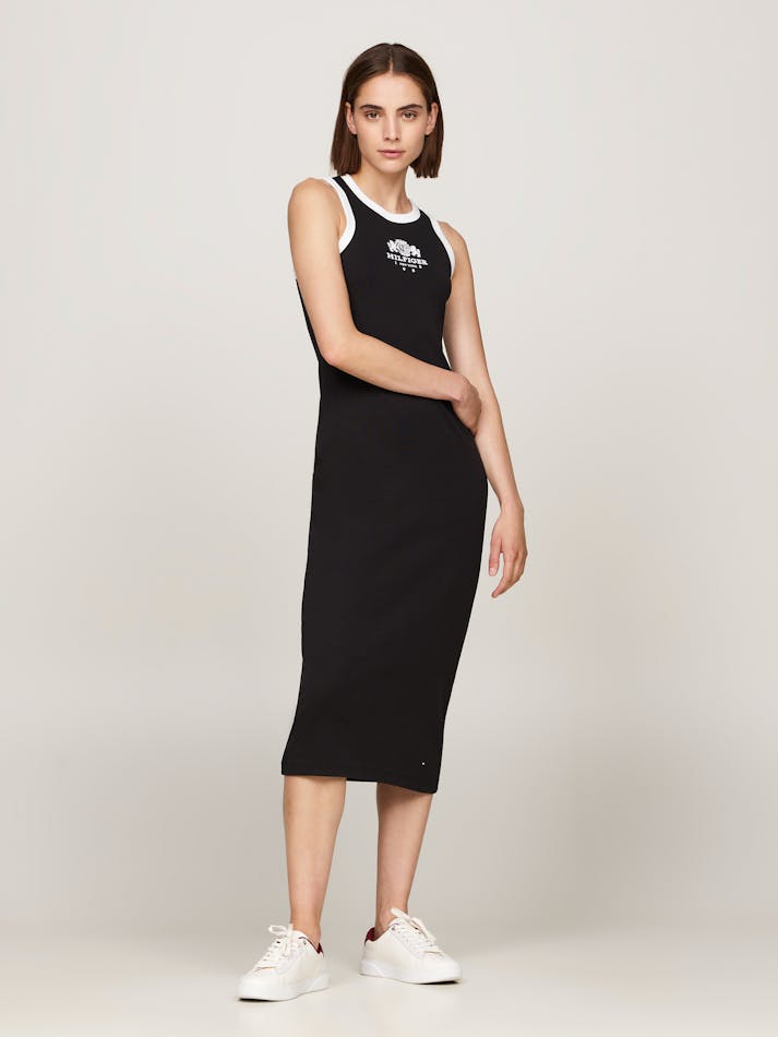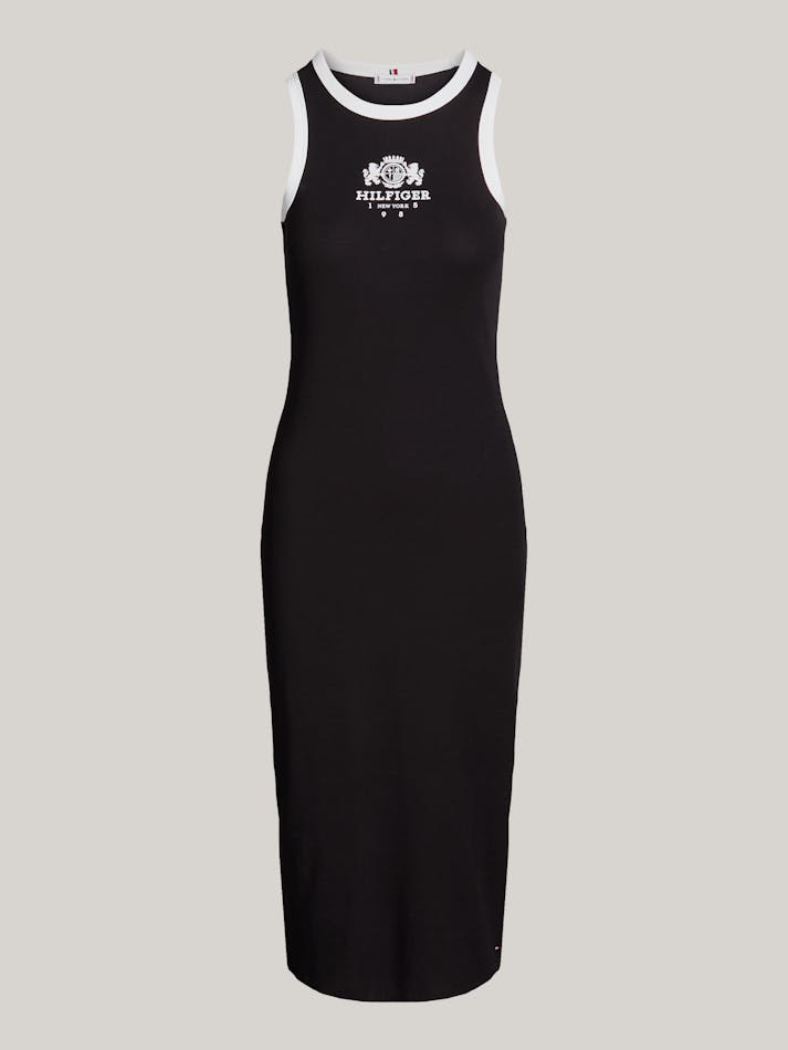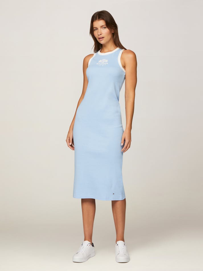 Embrace throwback style with this rib-knit midi dress, crafted from pure cotton with contrast trims and a monotype logo on the chest.