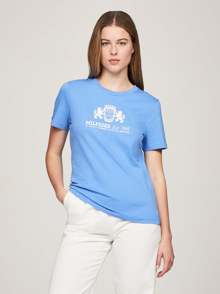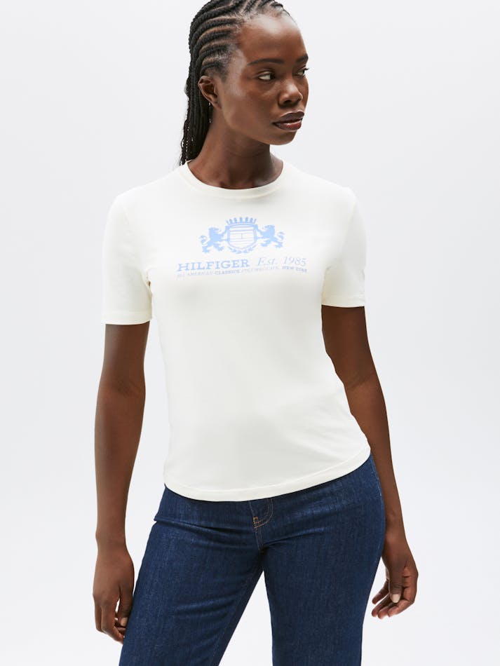 Cut to a flattering slim fit, this crew neck t-shirt is made from a soft cotton jersey and finished with a statement logo print on the chest.